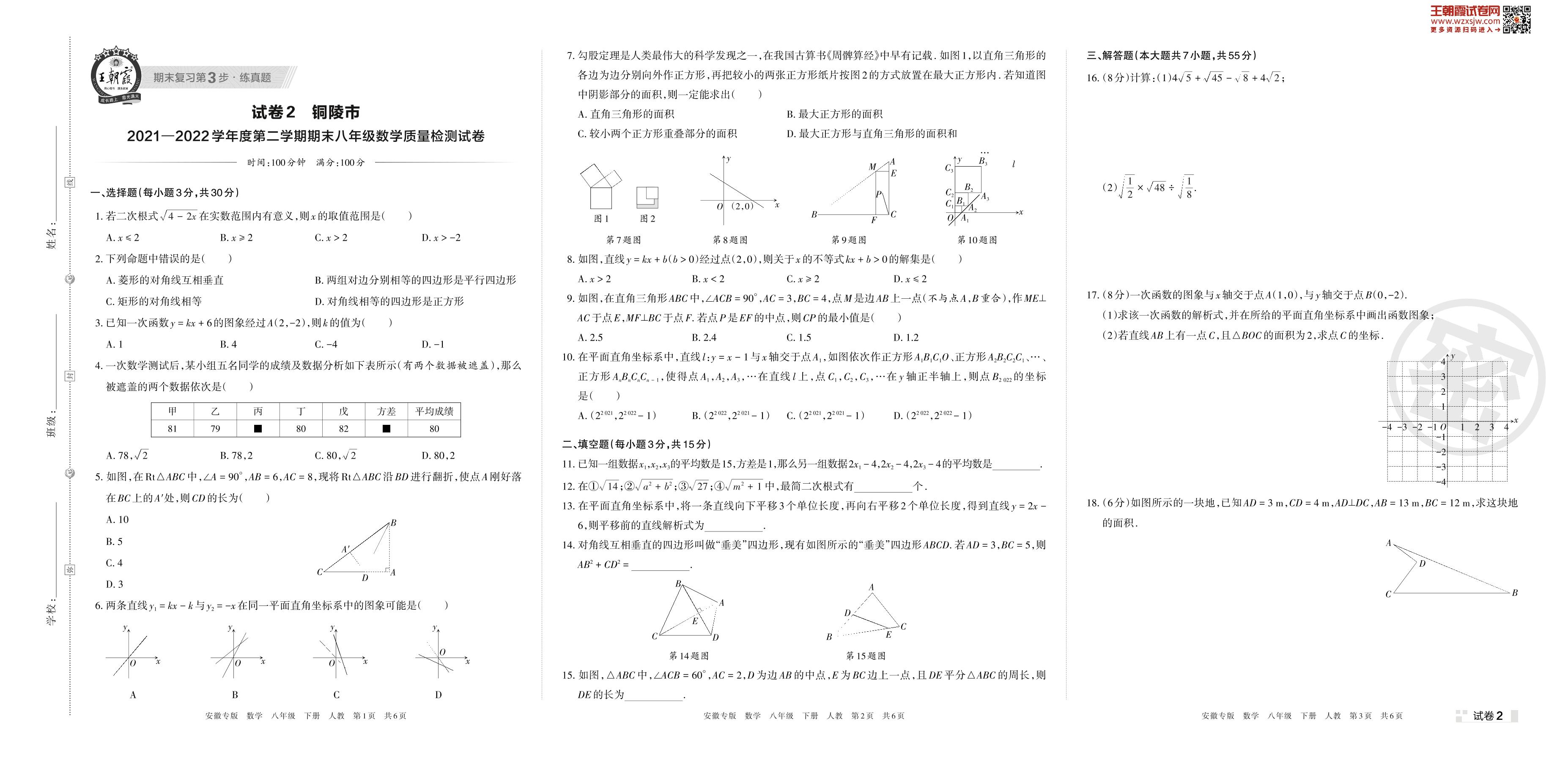 铜陵市2021—2022学年度第二学期期末八年级数学质量检测试卷(人教版)【2】
