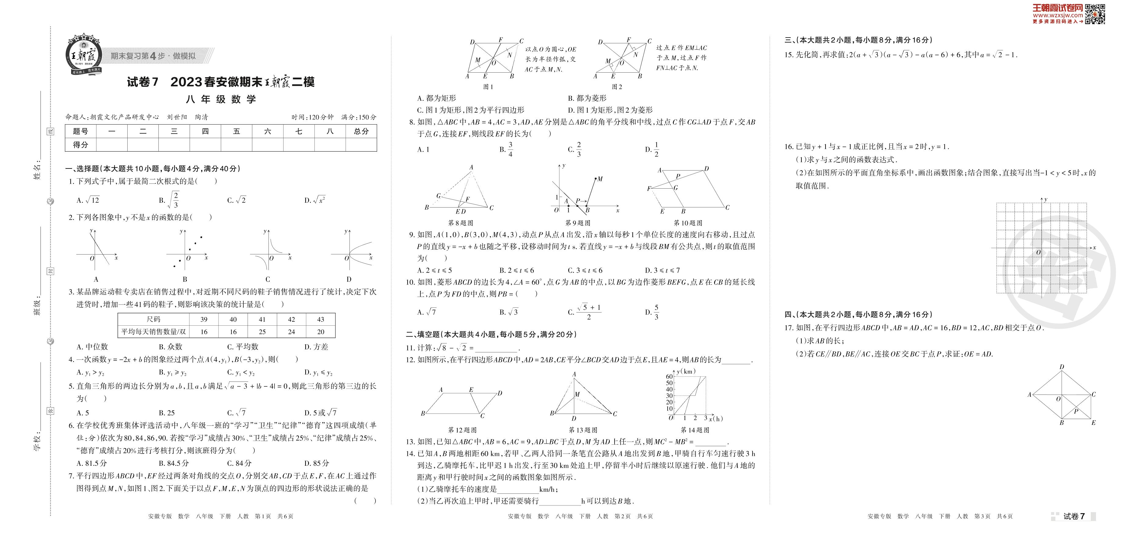 王朝霞期末模拟卷八年级下册数学(人教版)_R230424101549309【7】