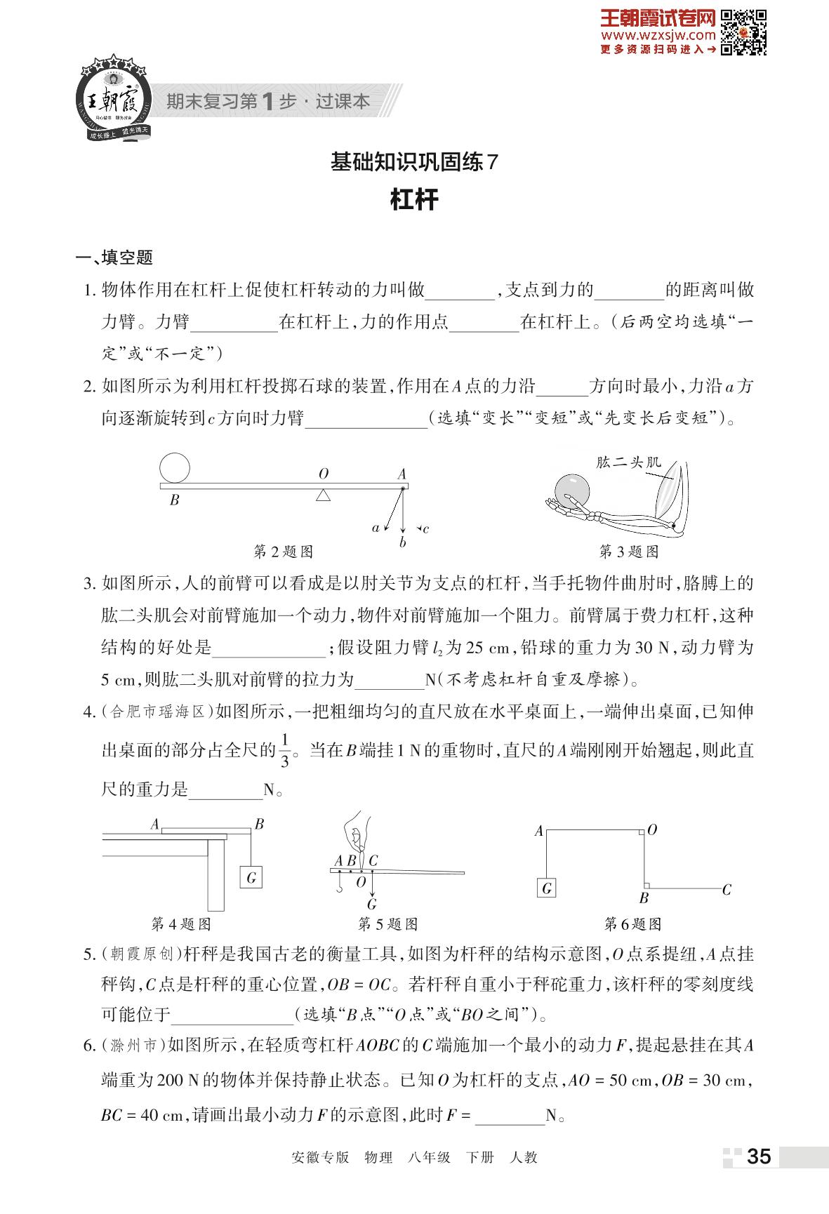 王朝霞期末过课本——基础知识巩固练7 杠杆八年级下册物理(人教版)_R230424103124325