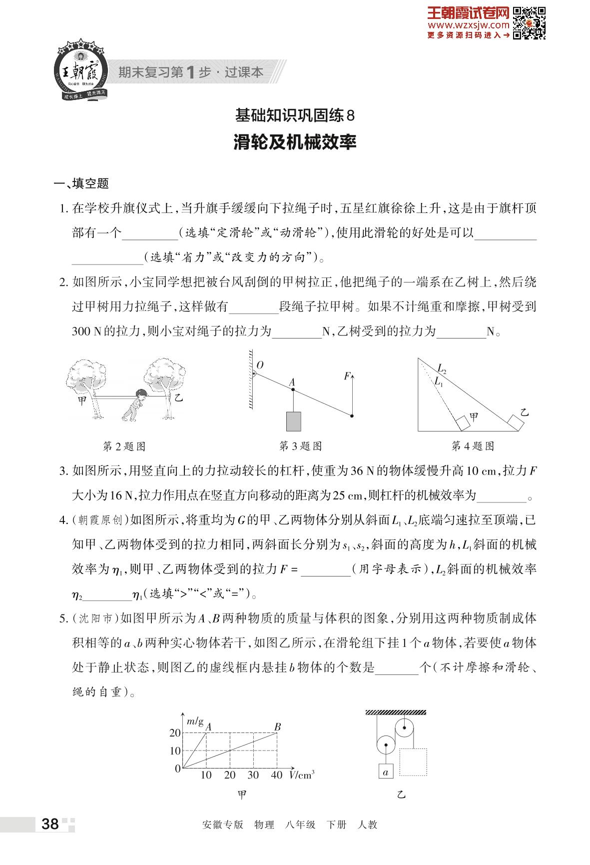 王朝霞期末过课本——基础知识巩固练8 滑轮及机械效率八年级下册物理(人教版)_R230424103125871