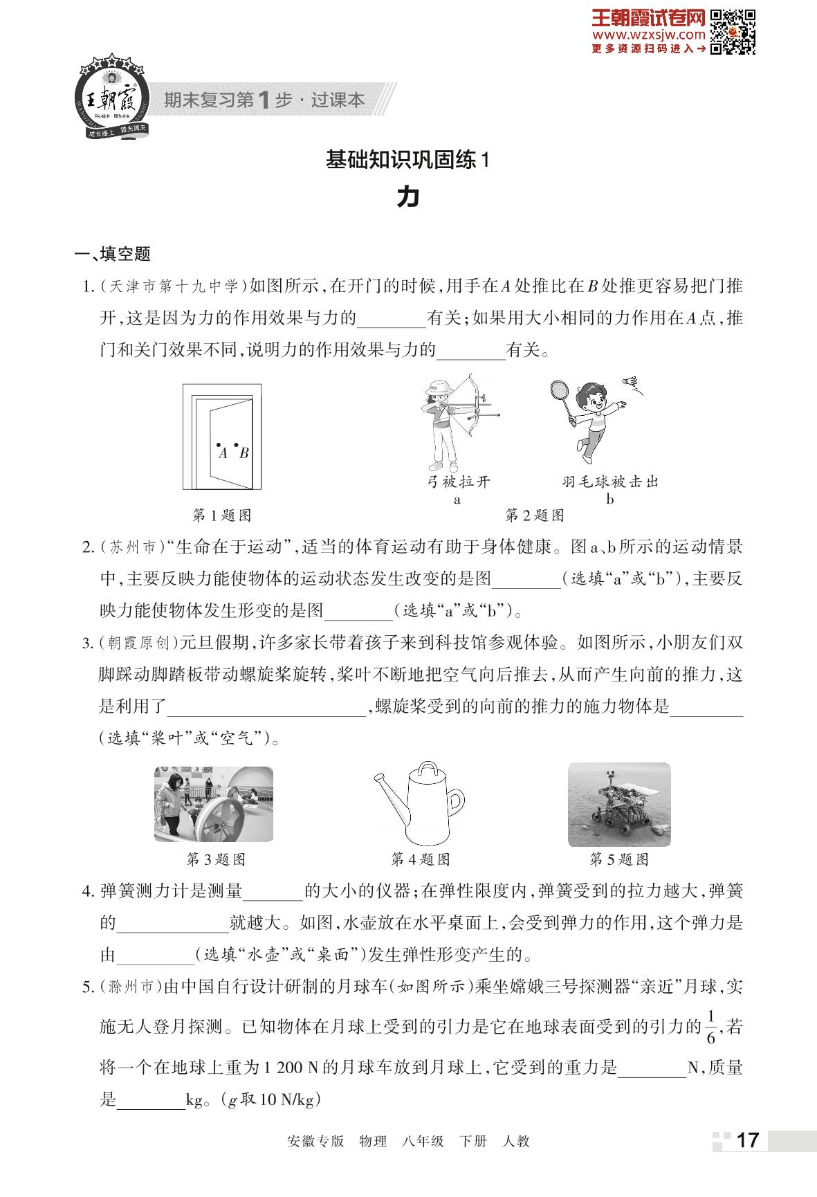王朝霞期末过课本——基础知识巩固练1 力八年级下册物理(人教版)_R230424103125949