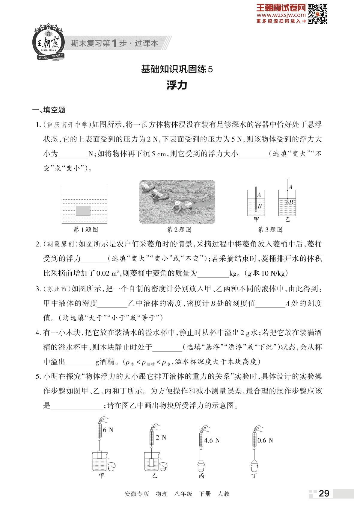 王朝霞期末过课本——基础知识巩固练5 浮力八年级下册物理(人教版)_R230424103125054