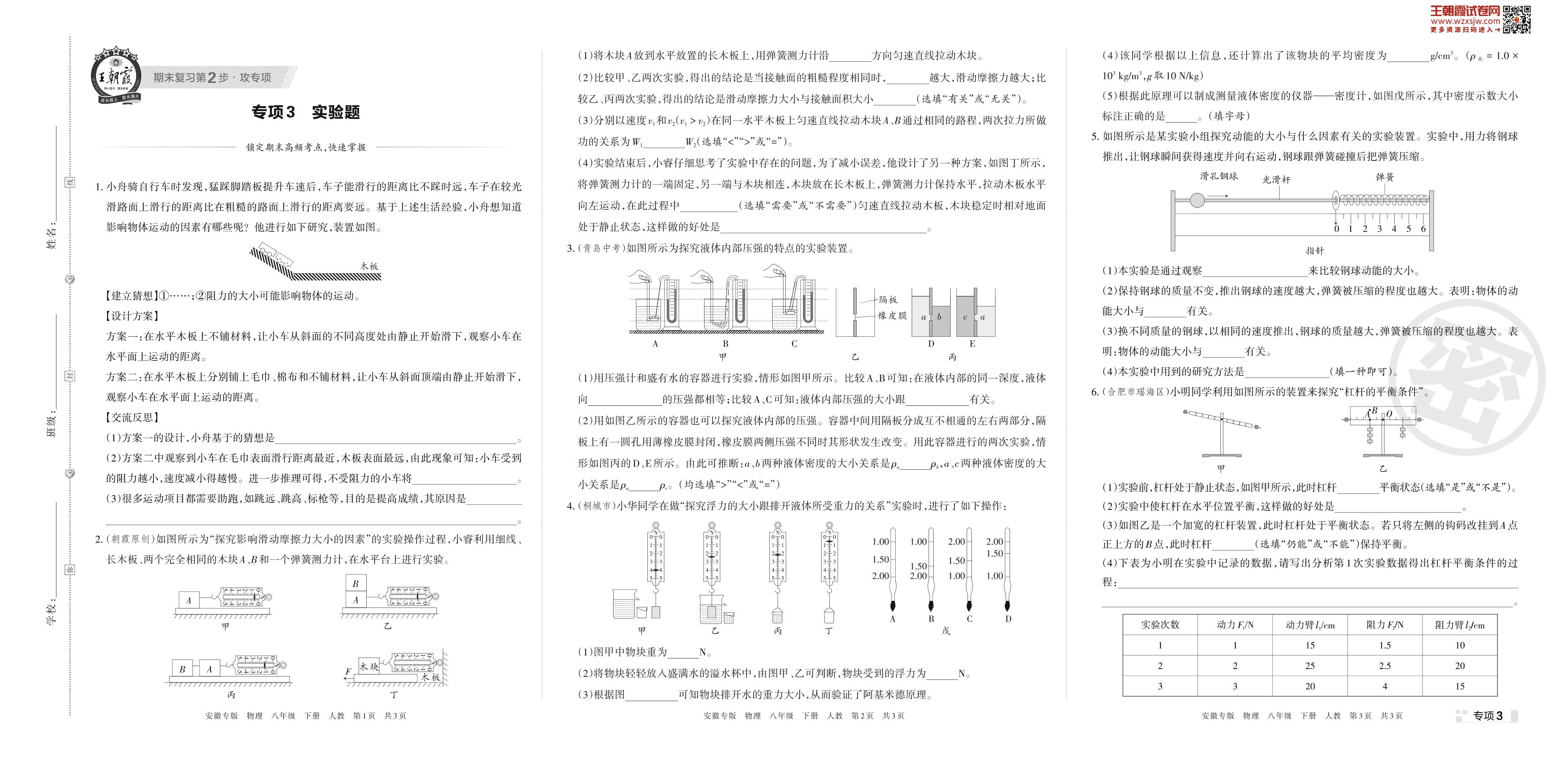 王朝霞期末专项卷——实验题八年级下册物理(人教版)【3】