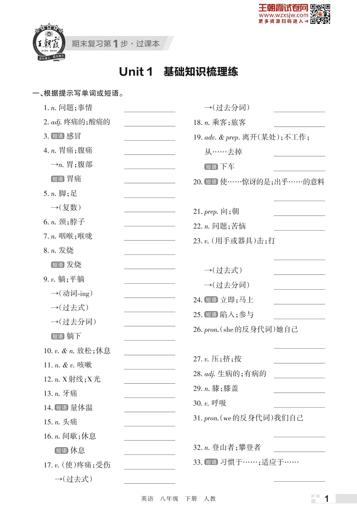 王朝霞期末过课本——Unit 1 基础知识梳理练八年级下册英语(人教版)_R230424104933568