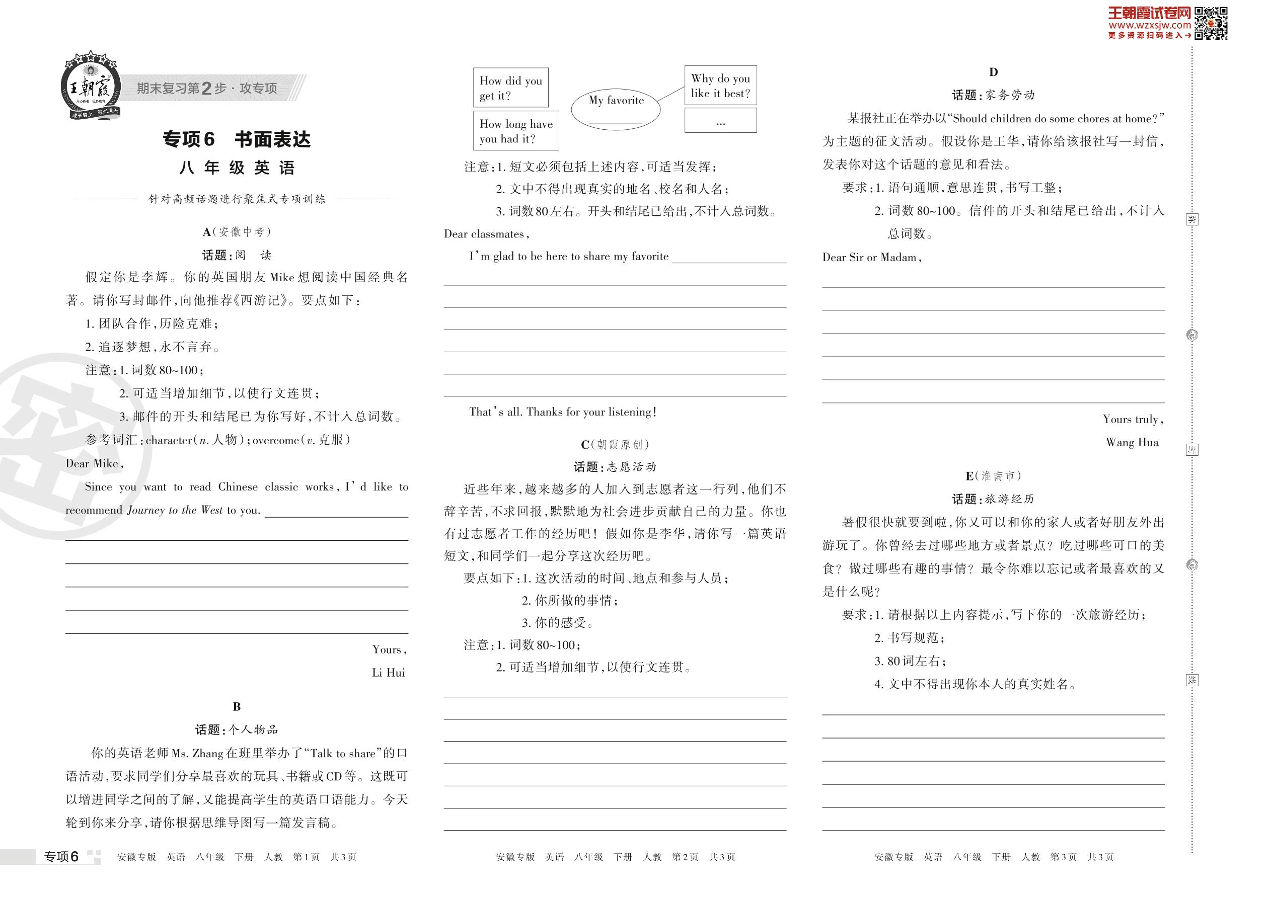 王朝霞期末专项卷——书面表达八年级下册英语(人教版)_R230424104933568【6】