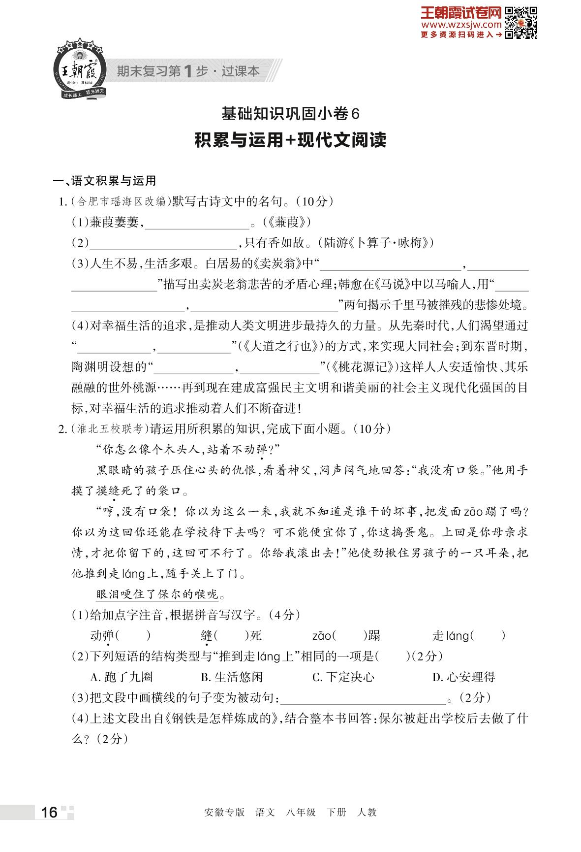 王朝霞期末过课本——基础知识巩固小卷6八年级下册语文(人教版)