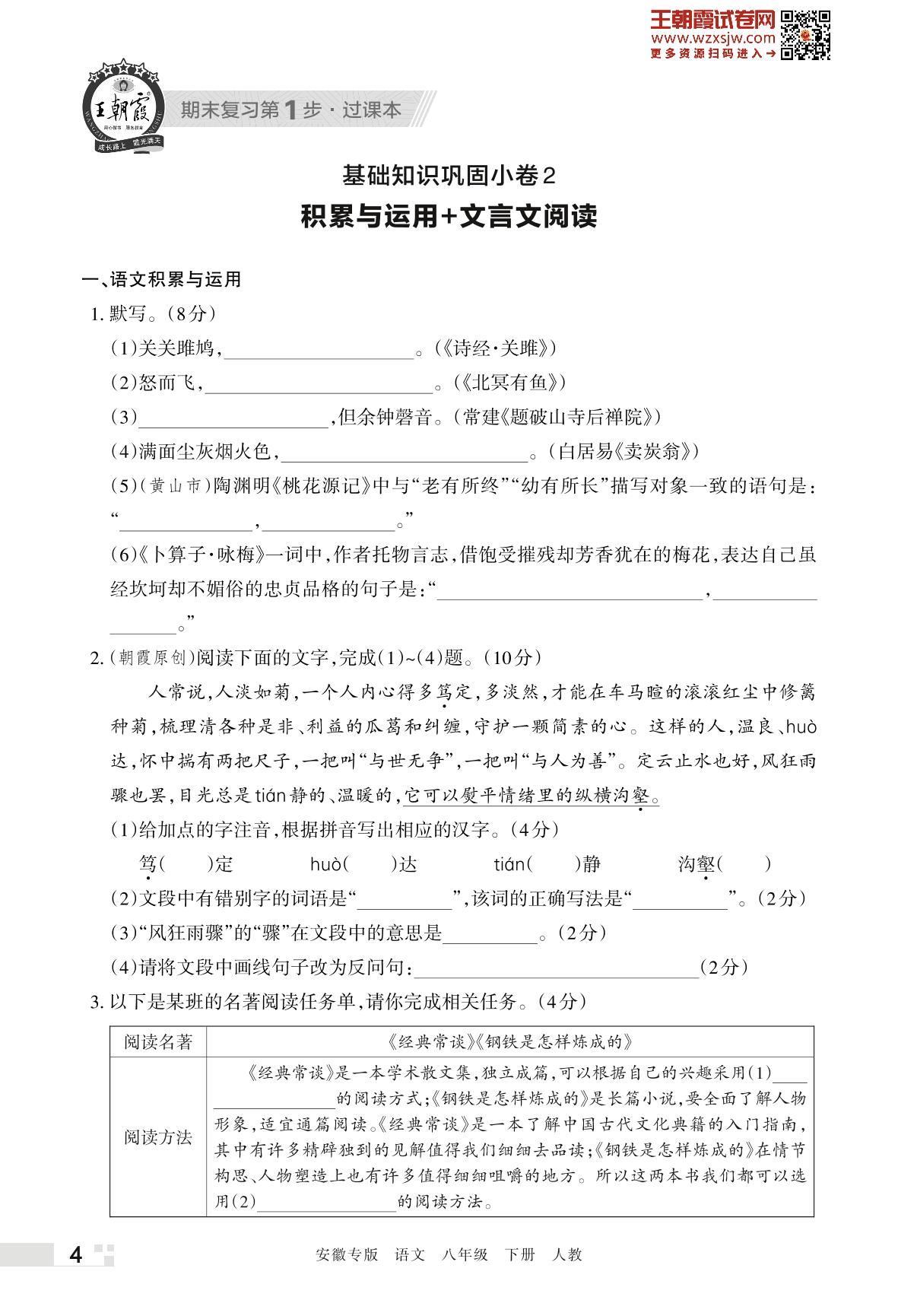 王朝霞期末过课本——基础知识巩固小卷2八年级下册语文(人教版)