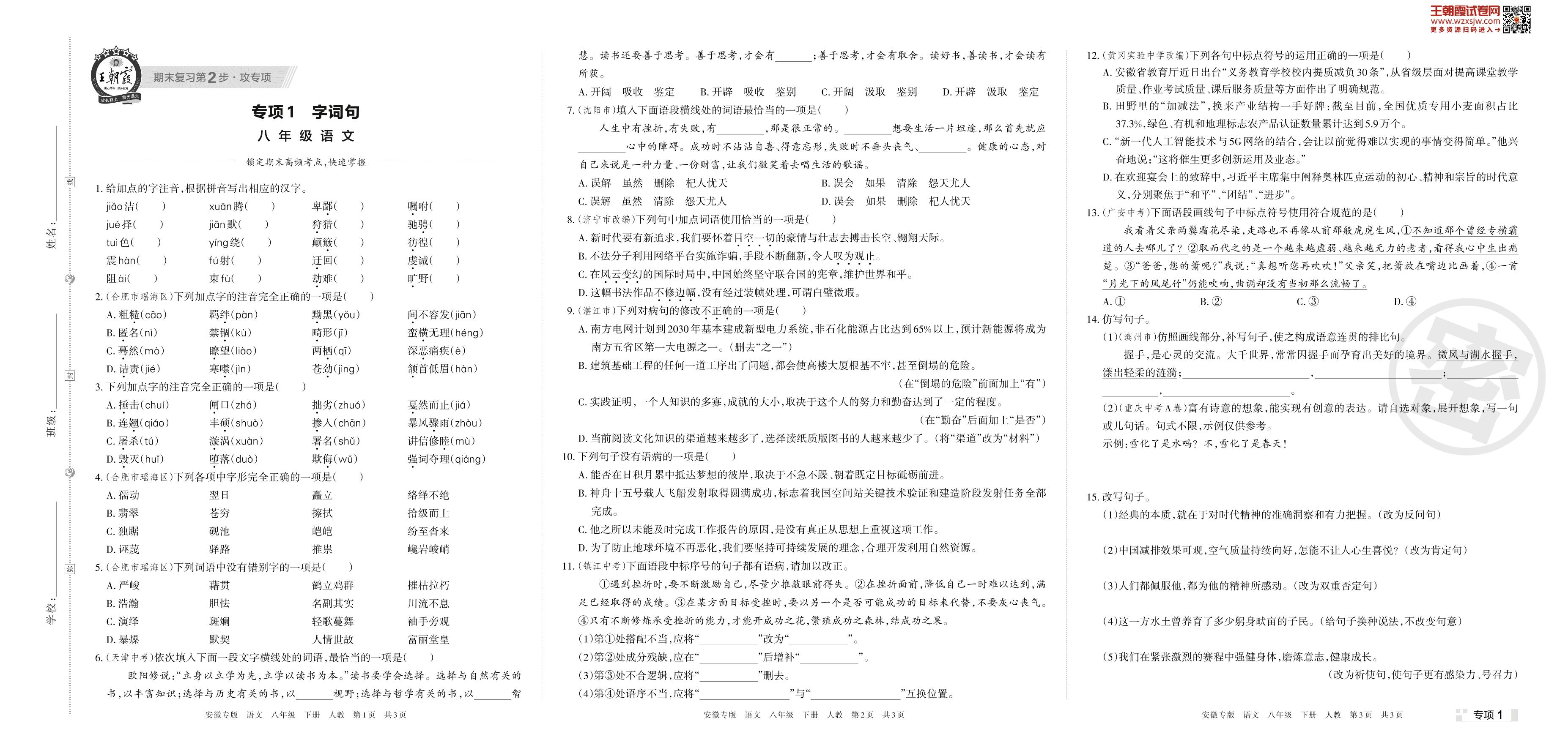王朝霞期末专项卷——字词句八年级下册语文(人教版)_R230424110618021【1】