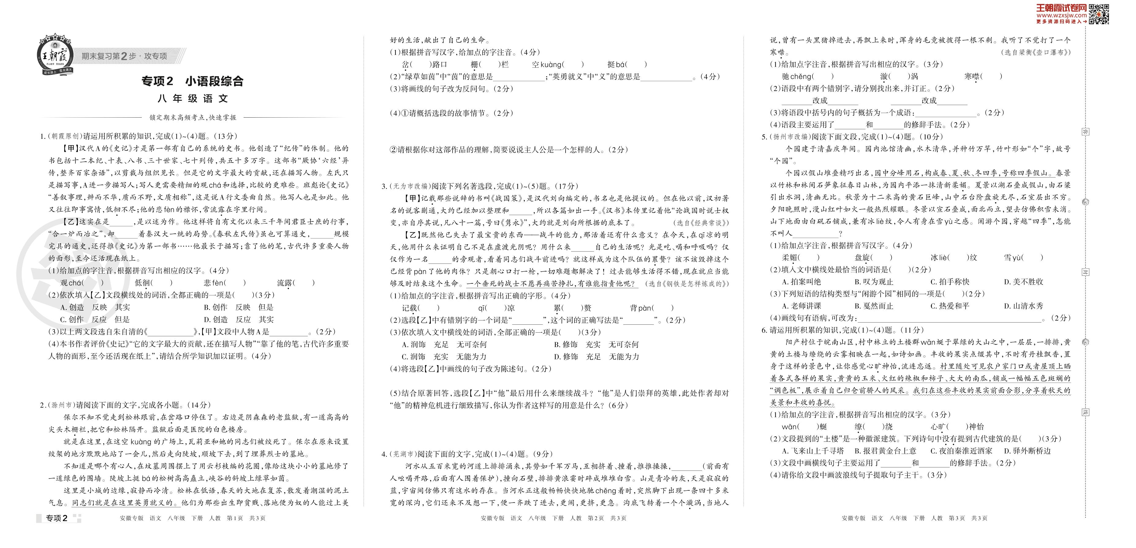 王朝霞期末专项卷——小语段综合八年级下册语文(人教版)【2】