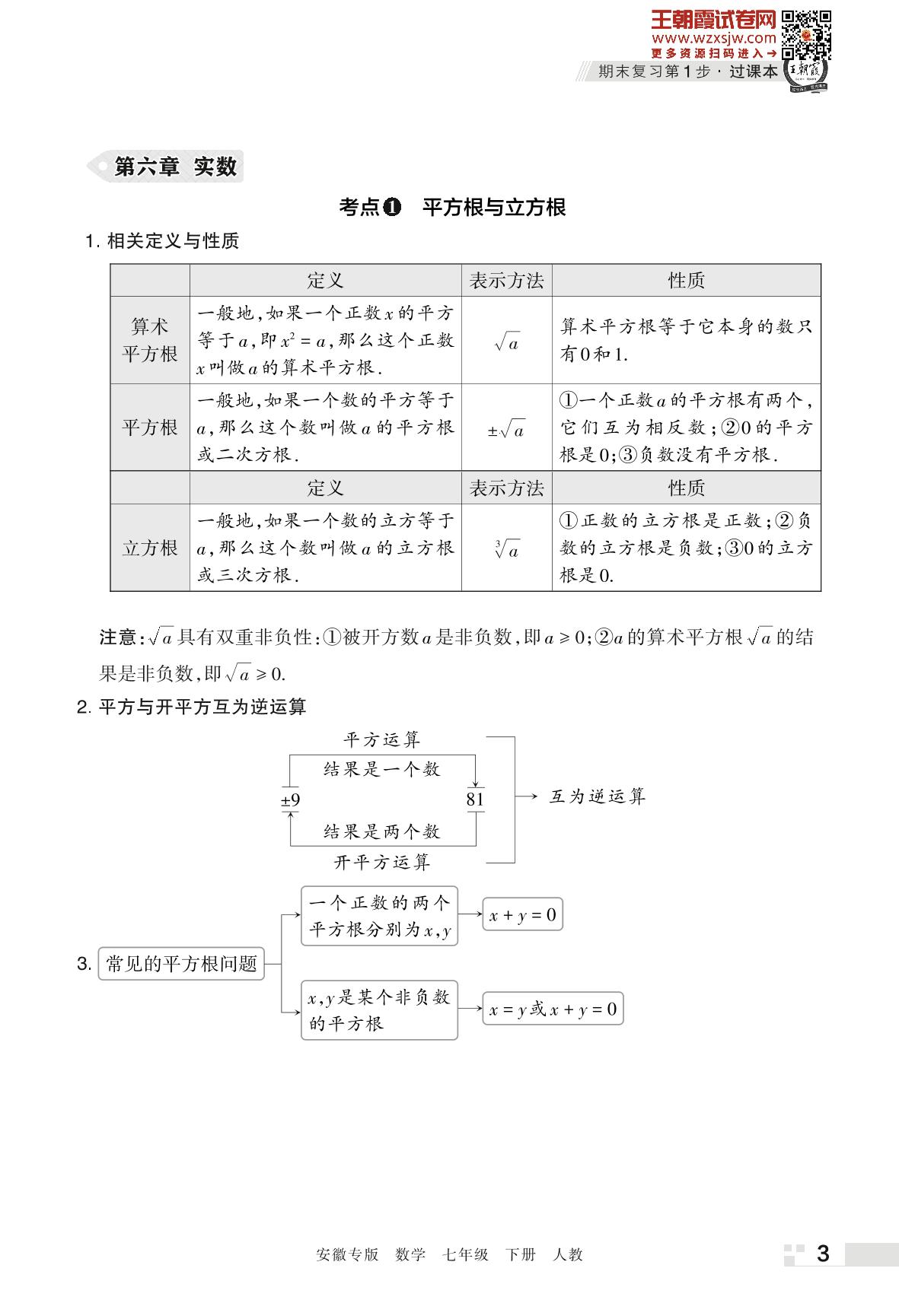 王朝霞期末知识梳理——第六章 实数七年级下册数学(人教版)_R230424111653101