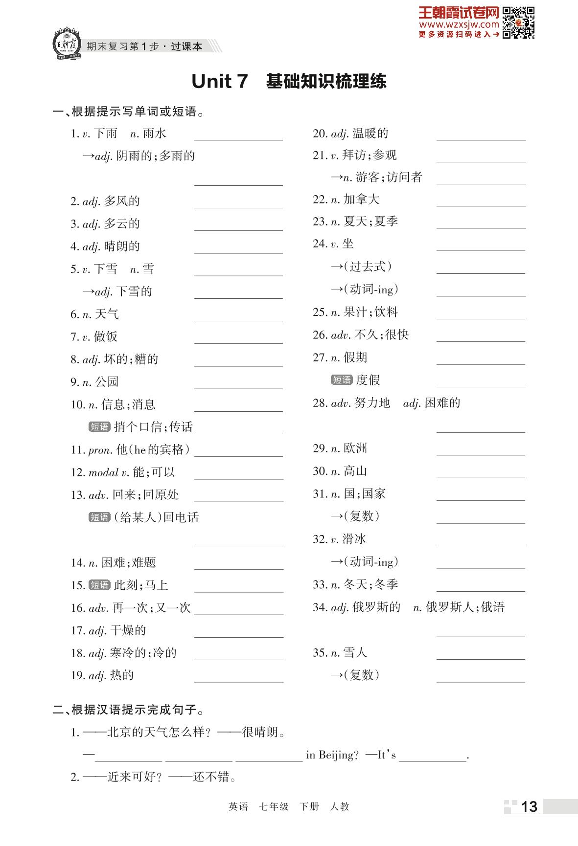 王朝霞期末过课本——Unit 7 基础知识梳理练七年级下册英语(人教版)_R230424113625139