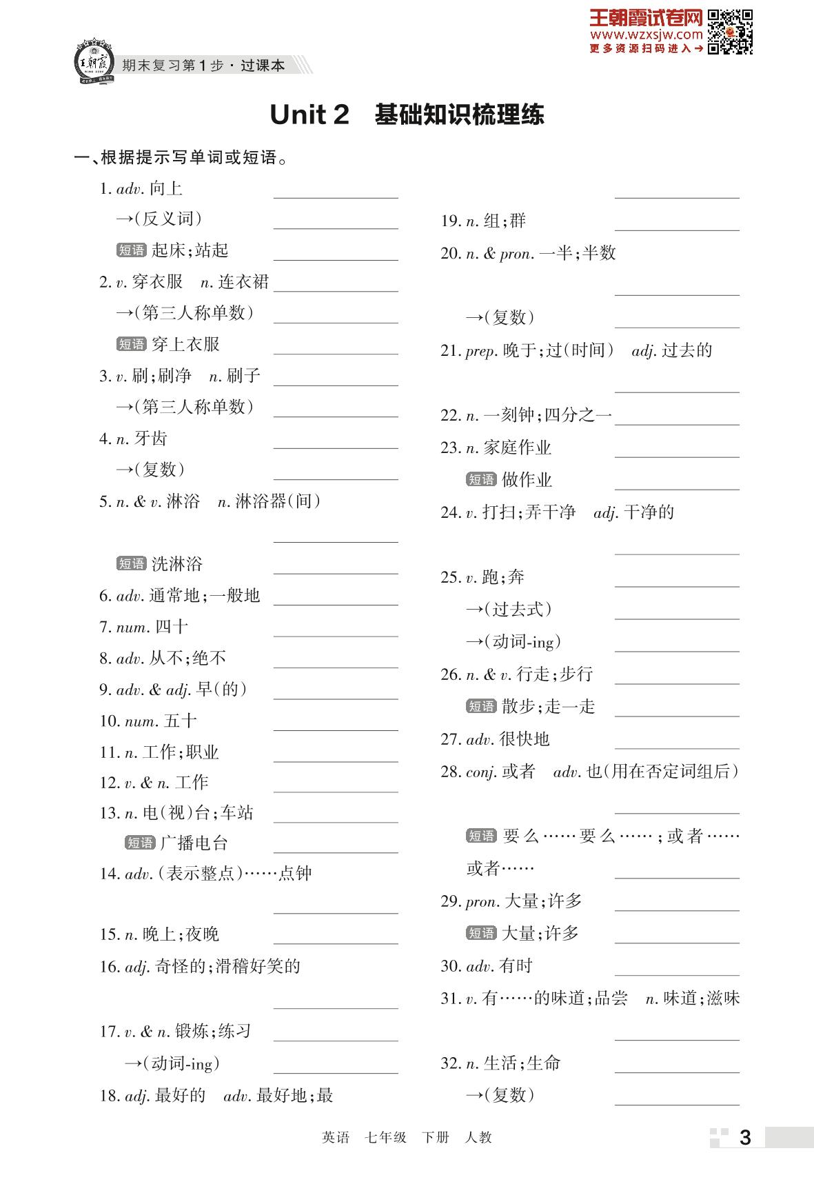 王朝霞期末过课本——Unit 2 基础知识梳理练七年级下册英语(人教版)_R230424113626345