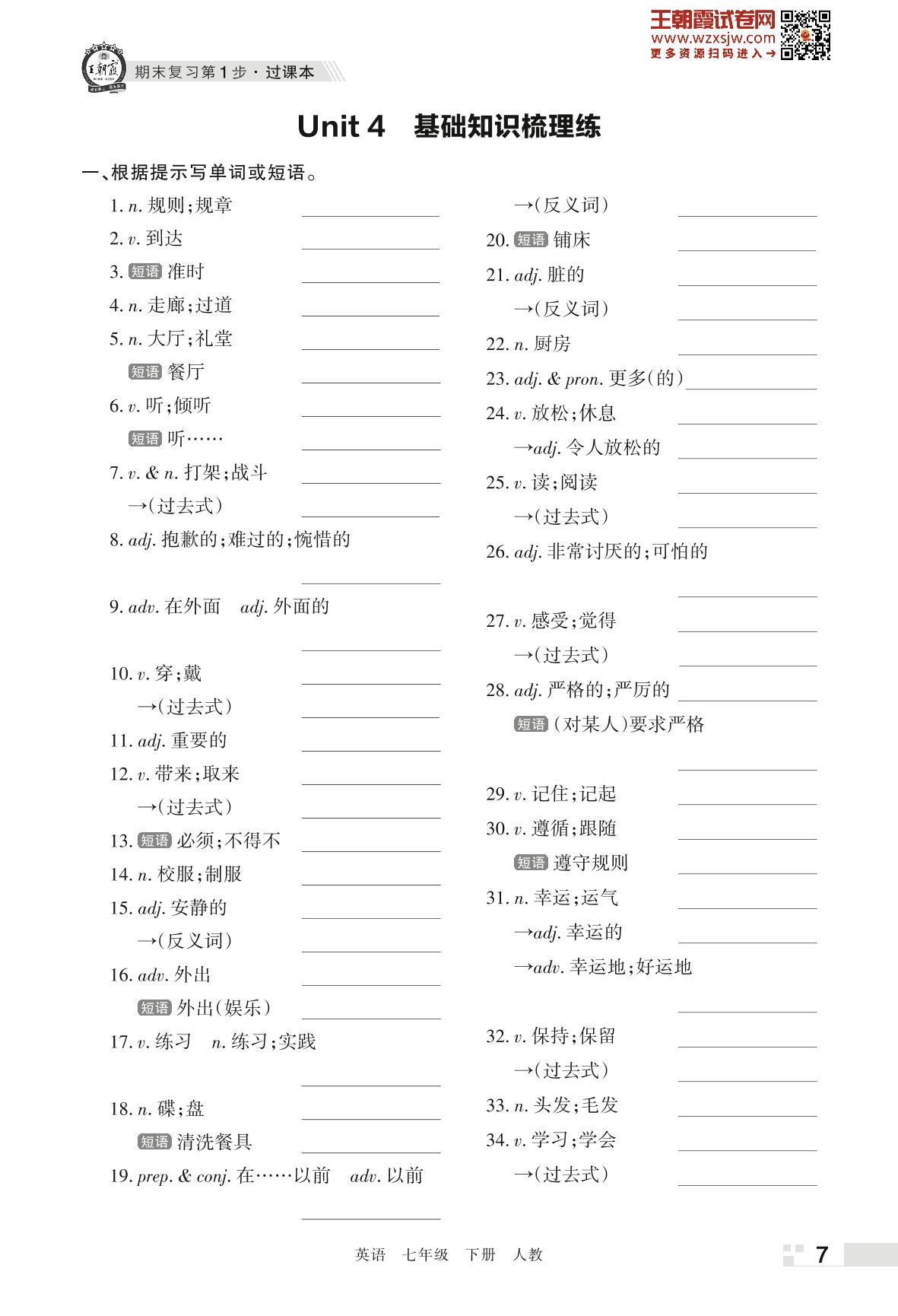 王朝霞期末过课本——Unit 4 基础知识梳理练七年级下册英语(人教版)_R230424113626661