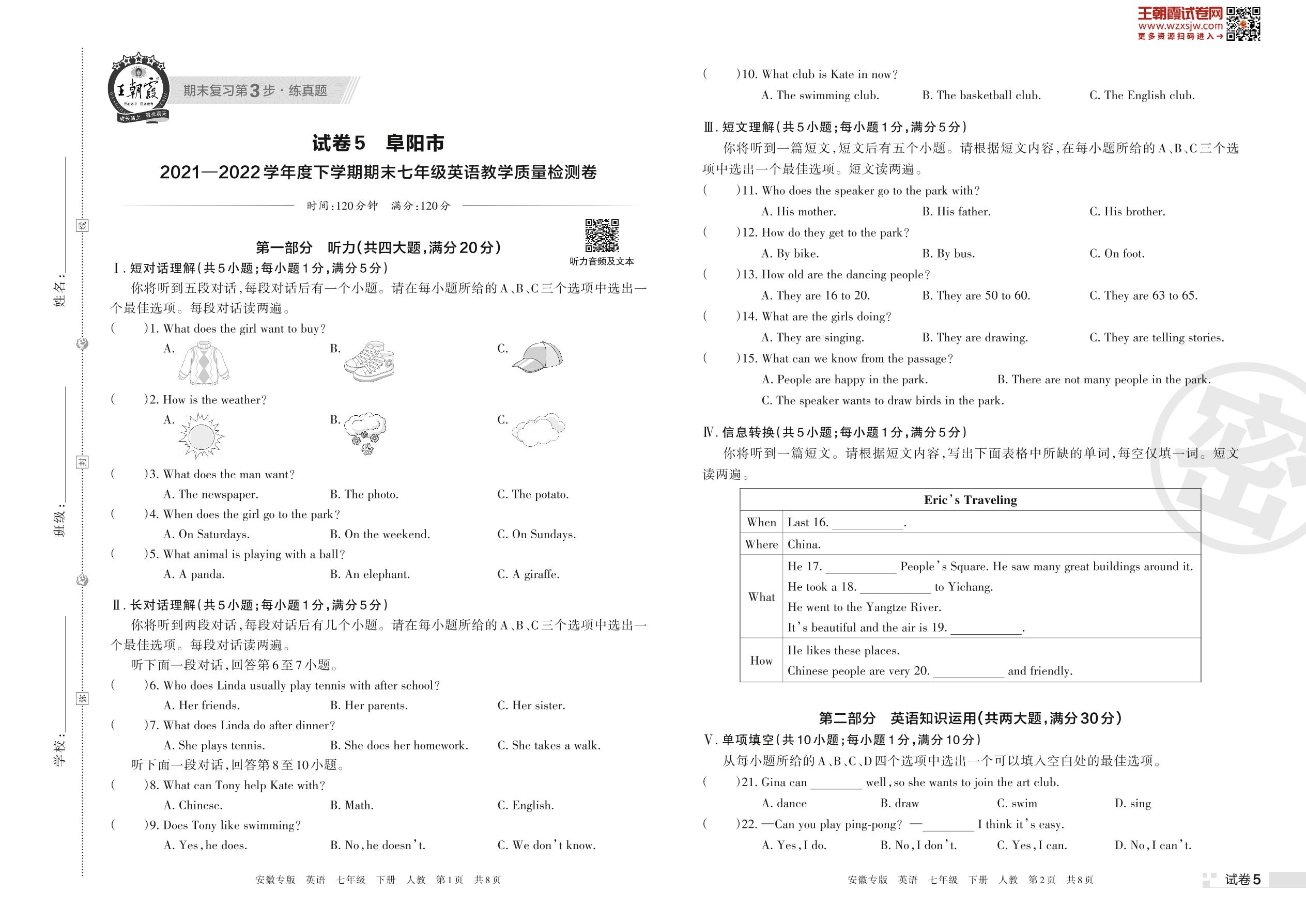 阜阳市2021—2022学年度下学期期末七年级英语教学质量检测卷(人教版)【5】