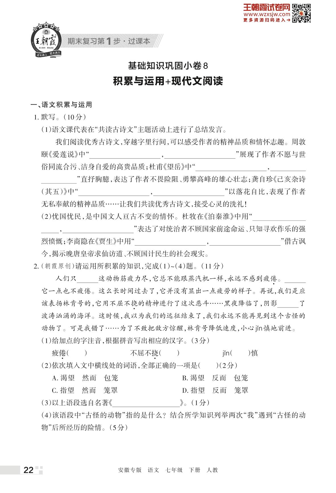 王朝霞期末过课本——基础知识巩固小卷8七年级下册语文(人教版)