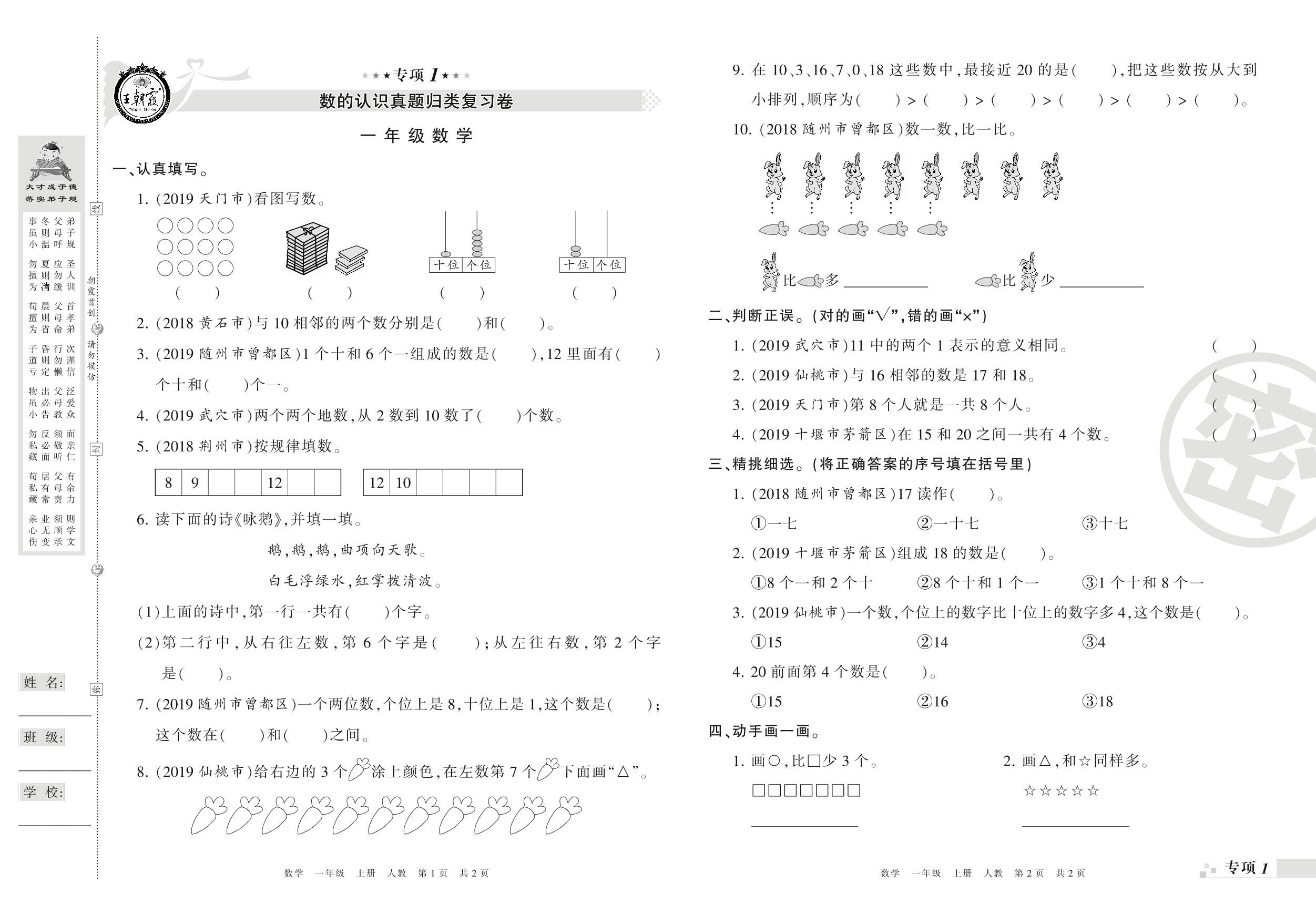 王朝霞期末专项卷——数的认识、计算真题归类复习一年级上册数学(人教版)_R210802220000【0】