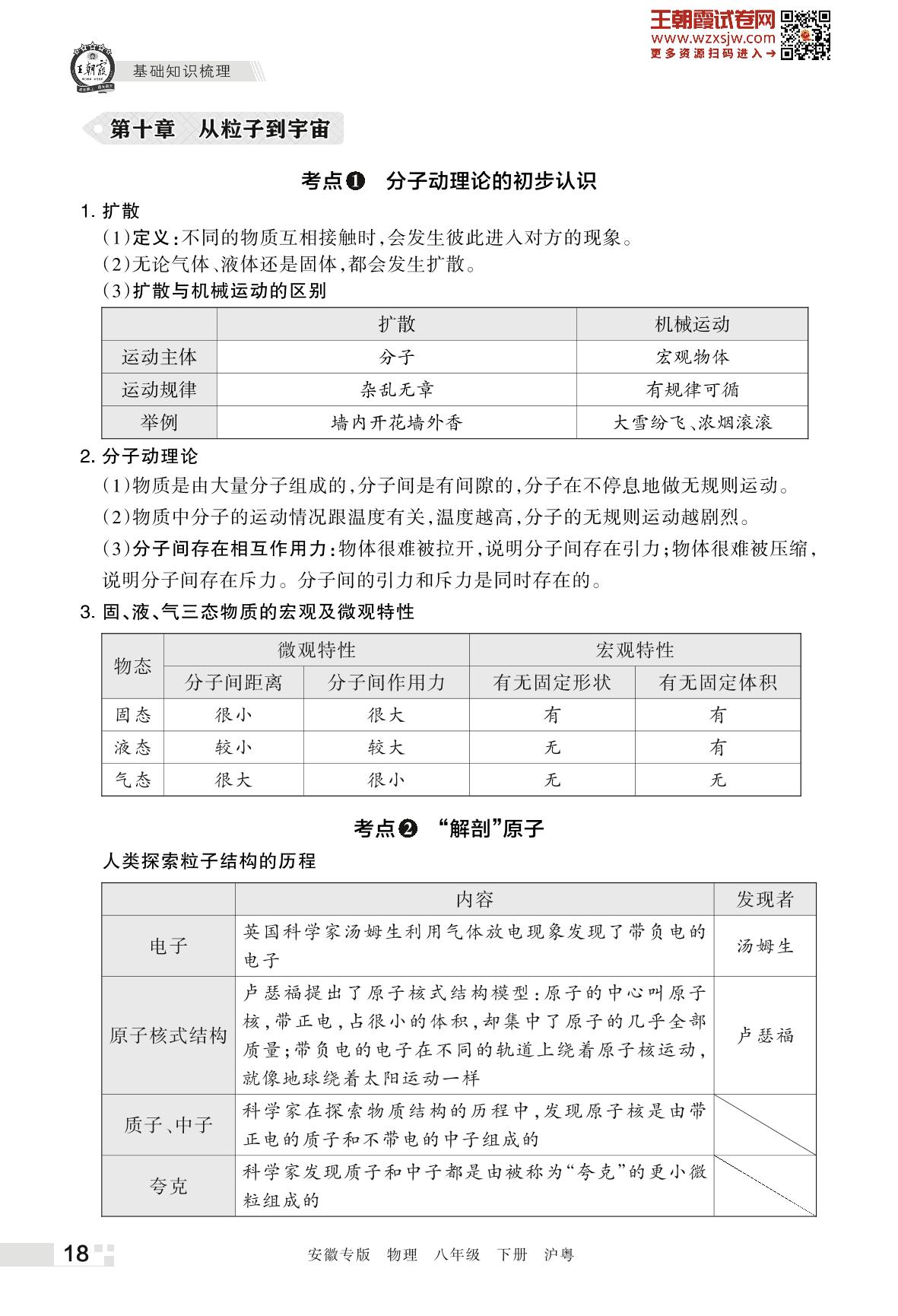 王朝霞期末知识梳理——第十章 从粒子到宇宙八年级下册物理(沪粤版)