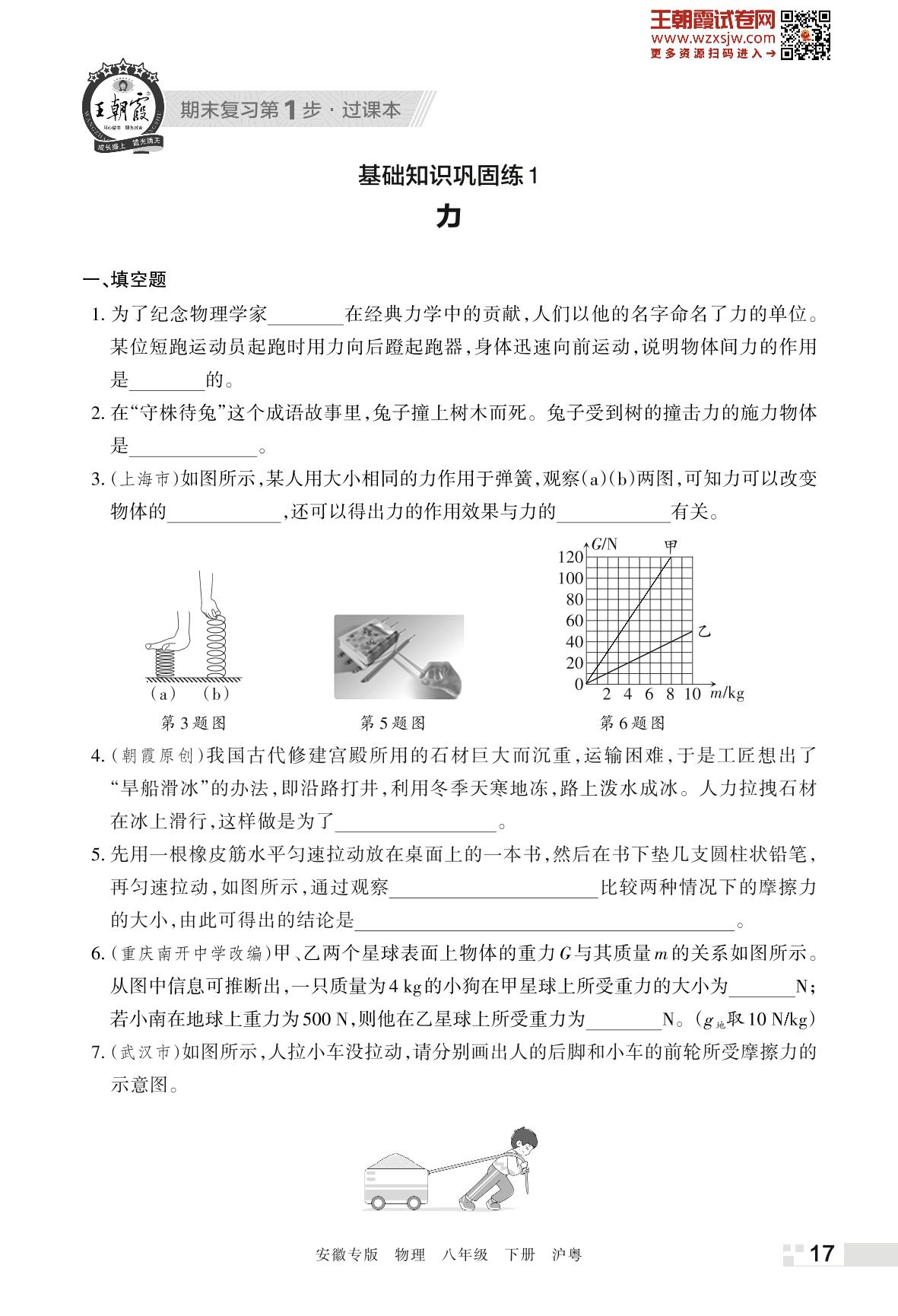 王朝霞期末过课本——基础知识巩固练 1 力八年级下册物理(沪粤版)