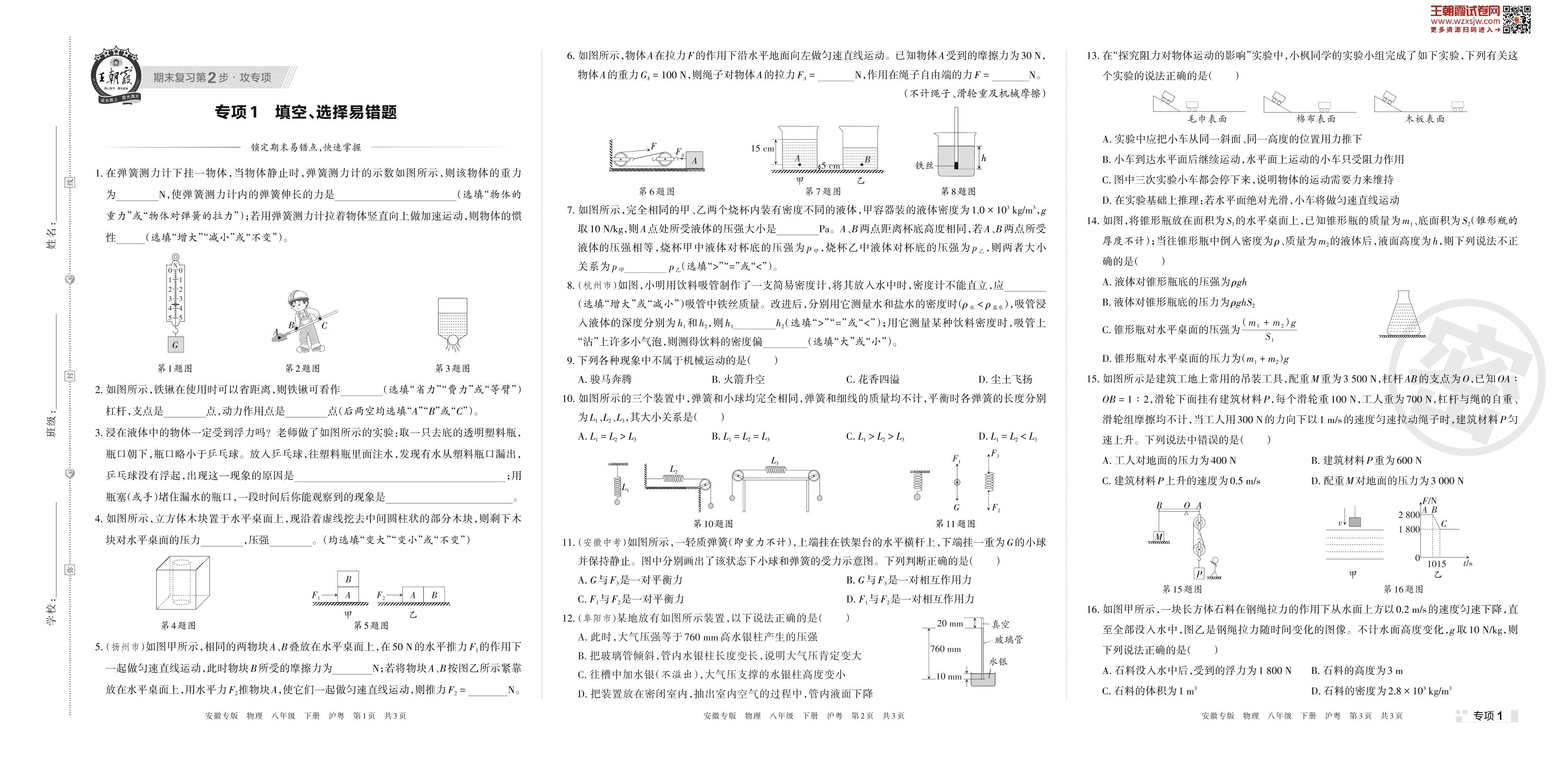 王朝霞期末专项卷——填空、选择易错题八年级下册物理(沪粤版)【1】