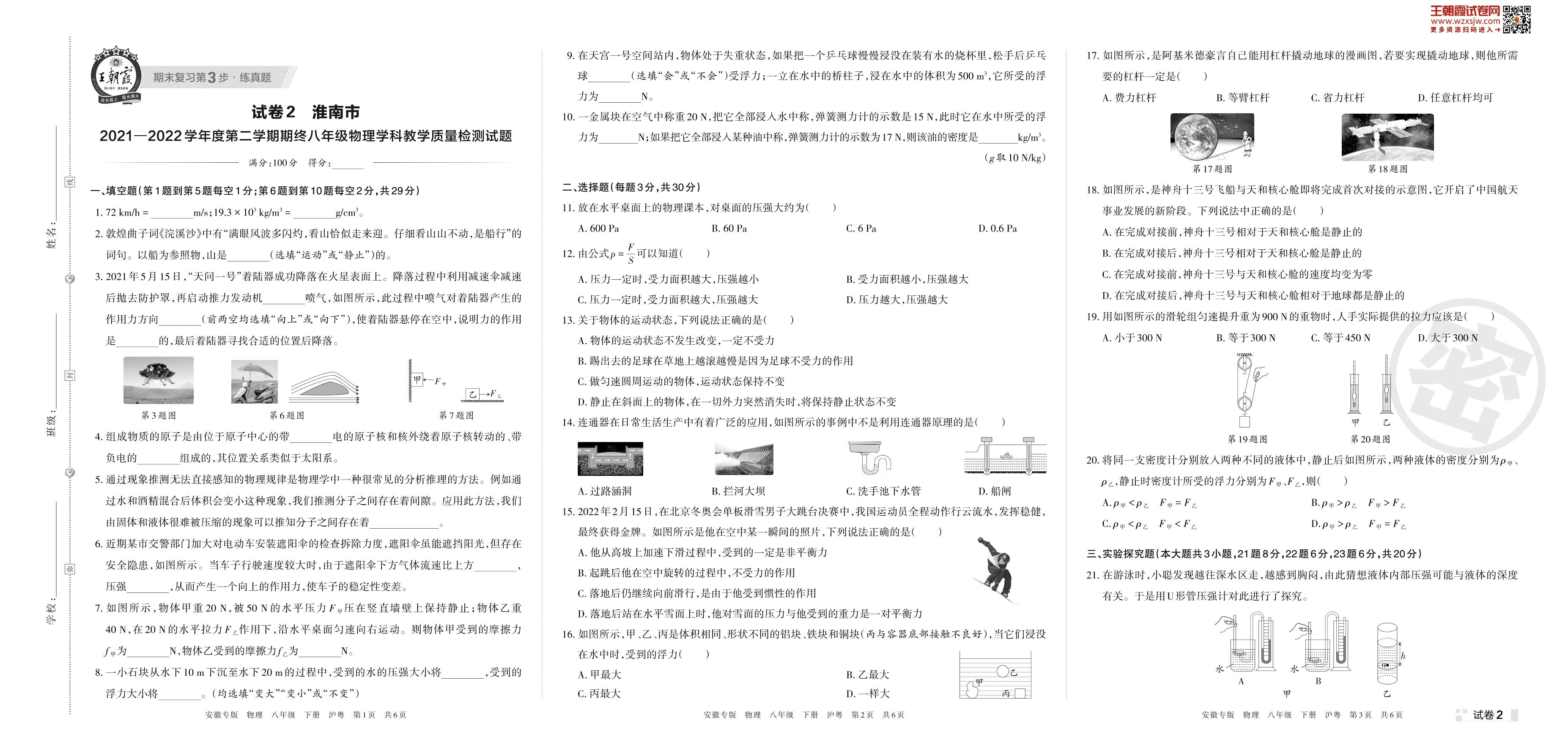 淮南市2021—2022学年度第二学期期终八年级物理学科教学质量检测试题(沪粤版)【2】
