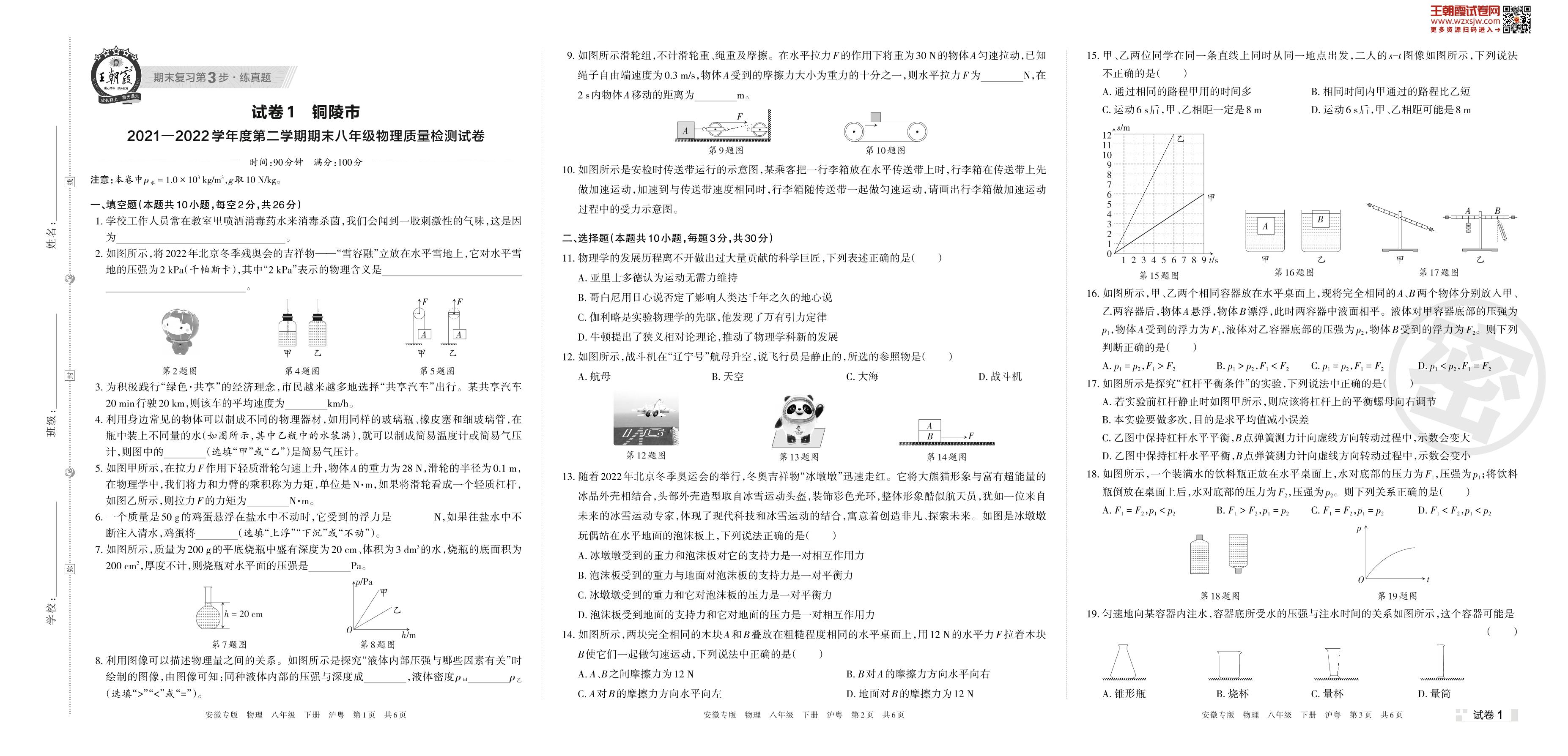 铜陵市2021—2022学年度第二学期期末八年级物理质量检测试卷(沪粤版)【1】