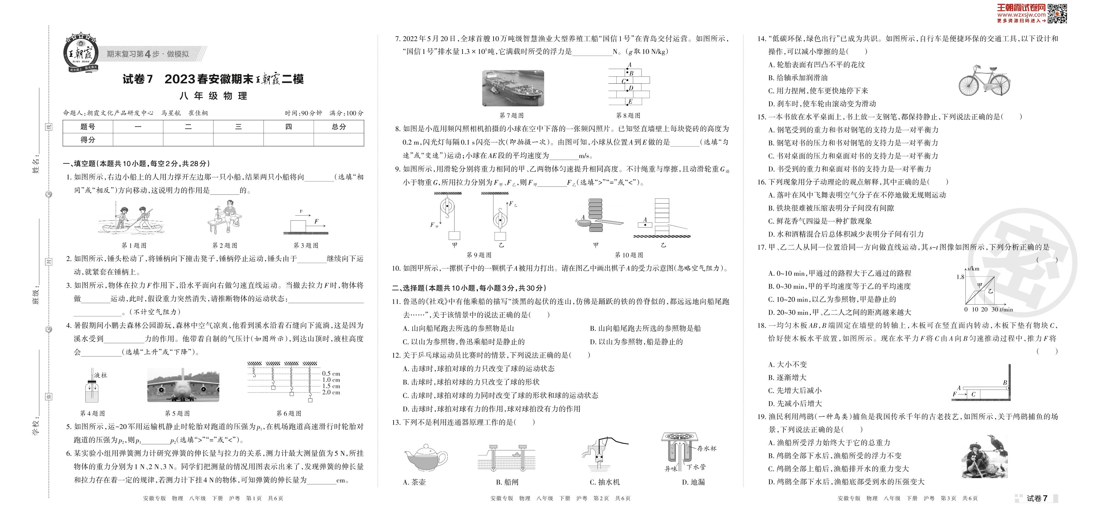 王朝霞期末模拟卷八年级下册物理(沪粤版)_R230424115728770【7】