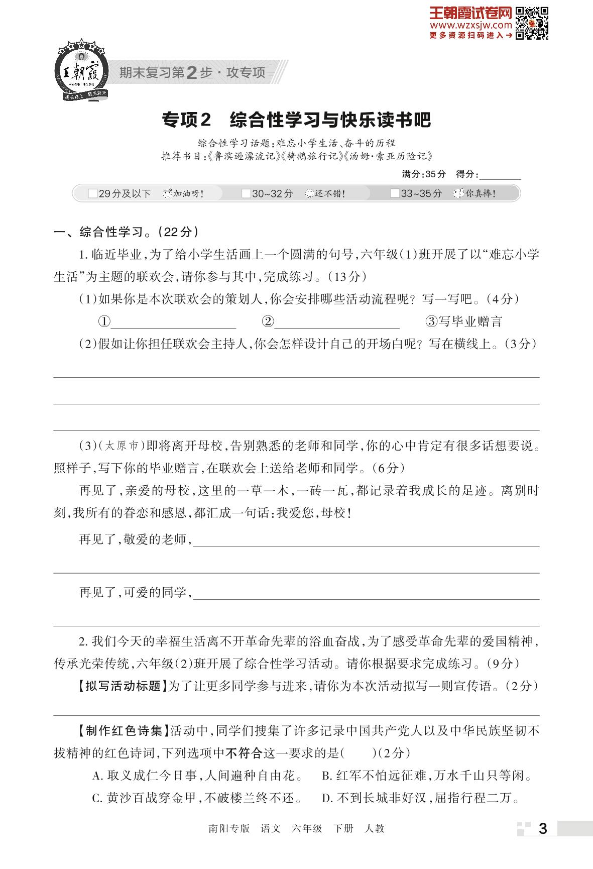 王朝霞期末专项卷——综合性学习与快乐读书吧六年级下册语文(人教版)_R230424115829722【2】