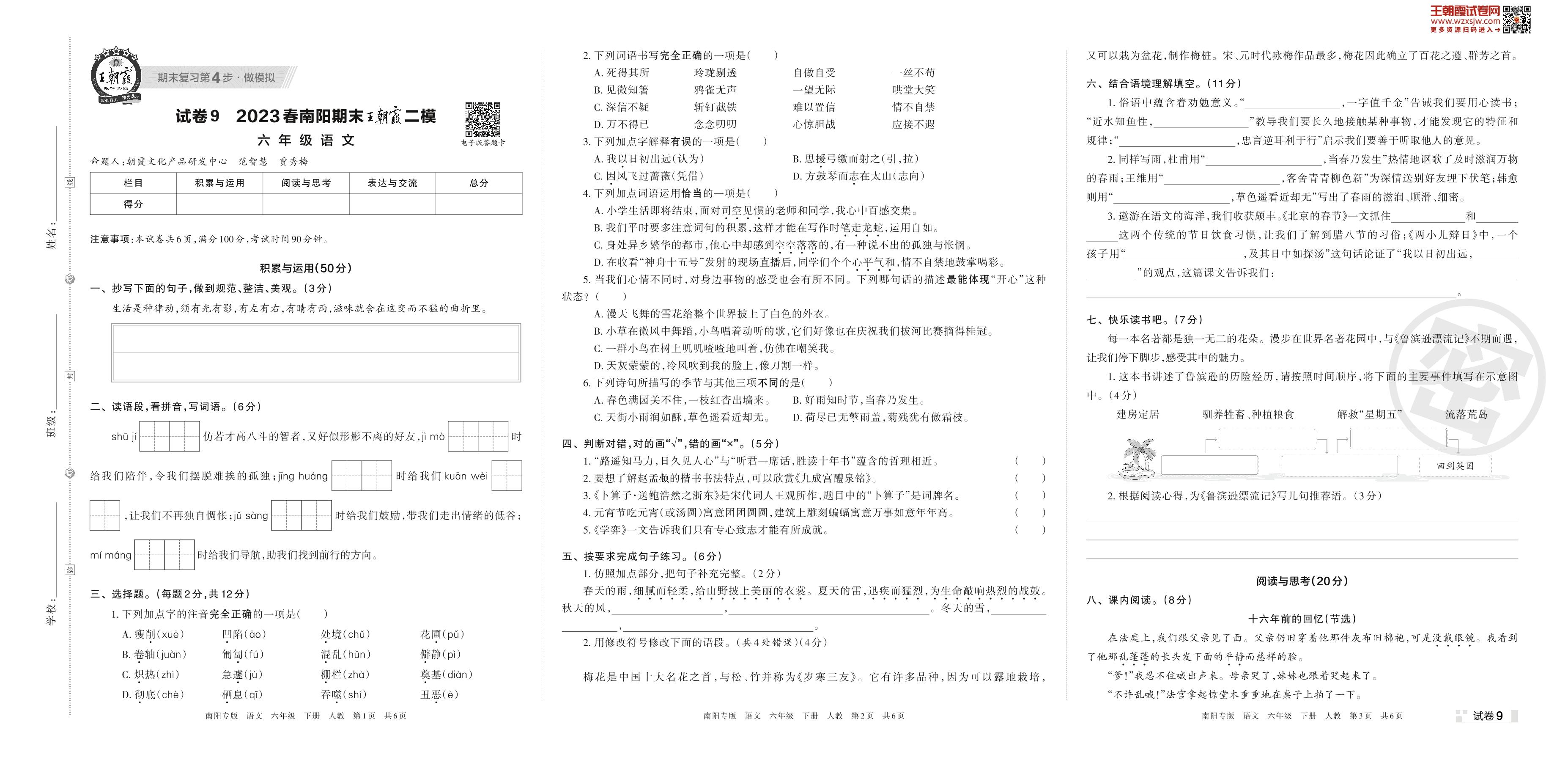 王朝霞期末模拟卷六年级下册语文(人教版)_R230424115831797【9】