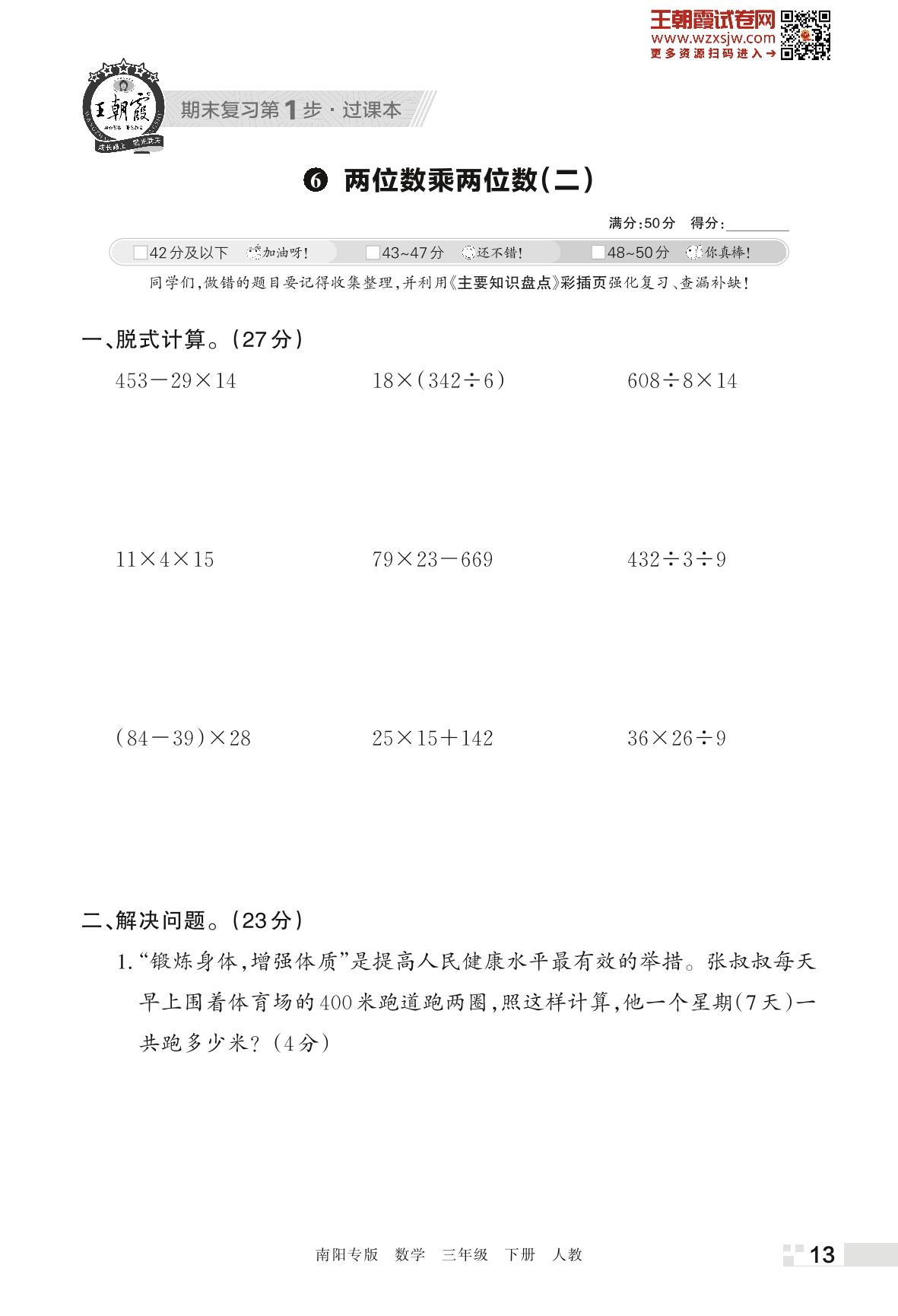 王朝霞期末过课本——6 两位数乘两位数(二)三年级下册数学(人教版)_R230424135944965