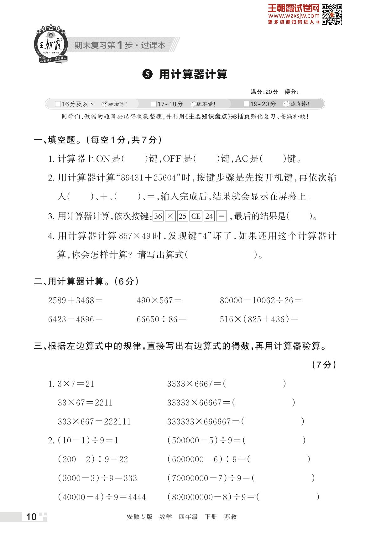 王朝霞期末过课本——5 用计算器计算四年级下册数学(苏教版)_R230424140314695