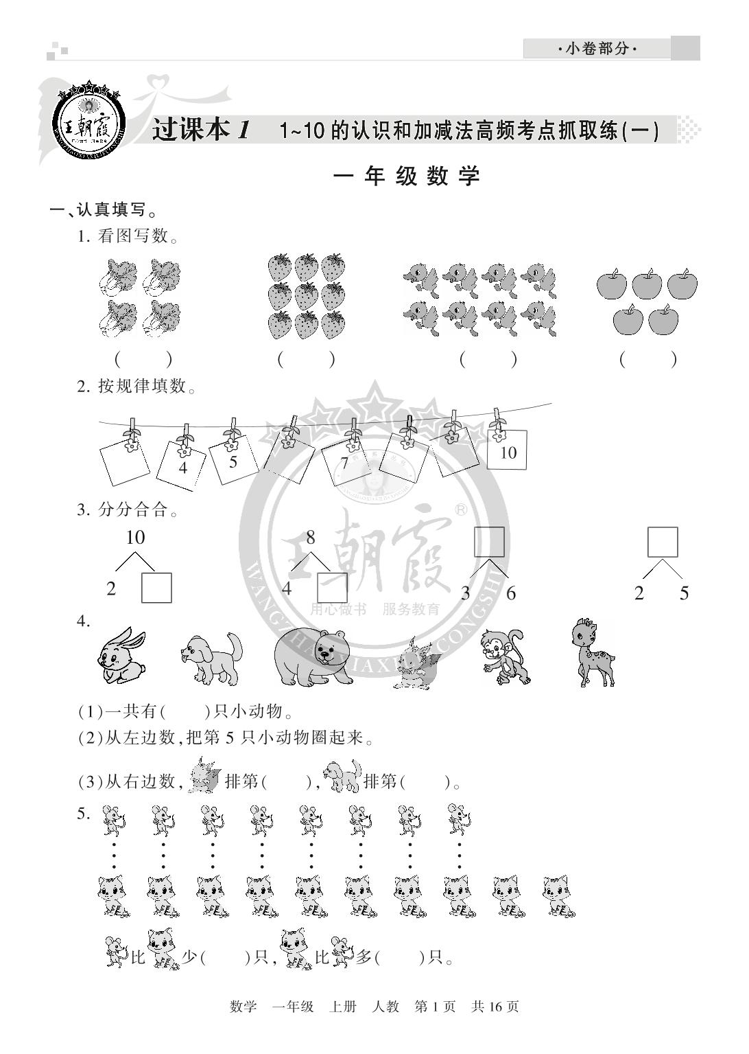 王朝霞期末过课本一年级上册数学(人教版)_R210802220034【0】