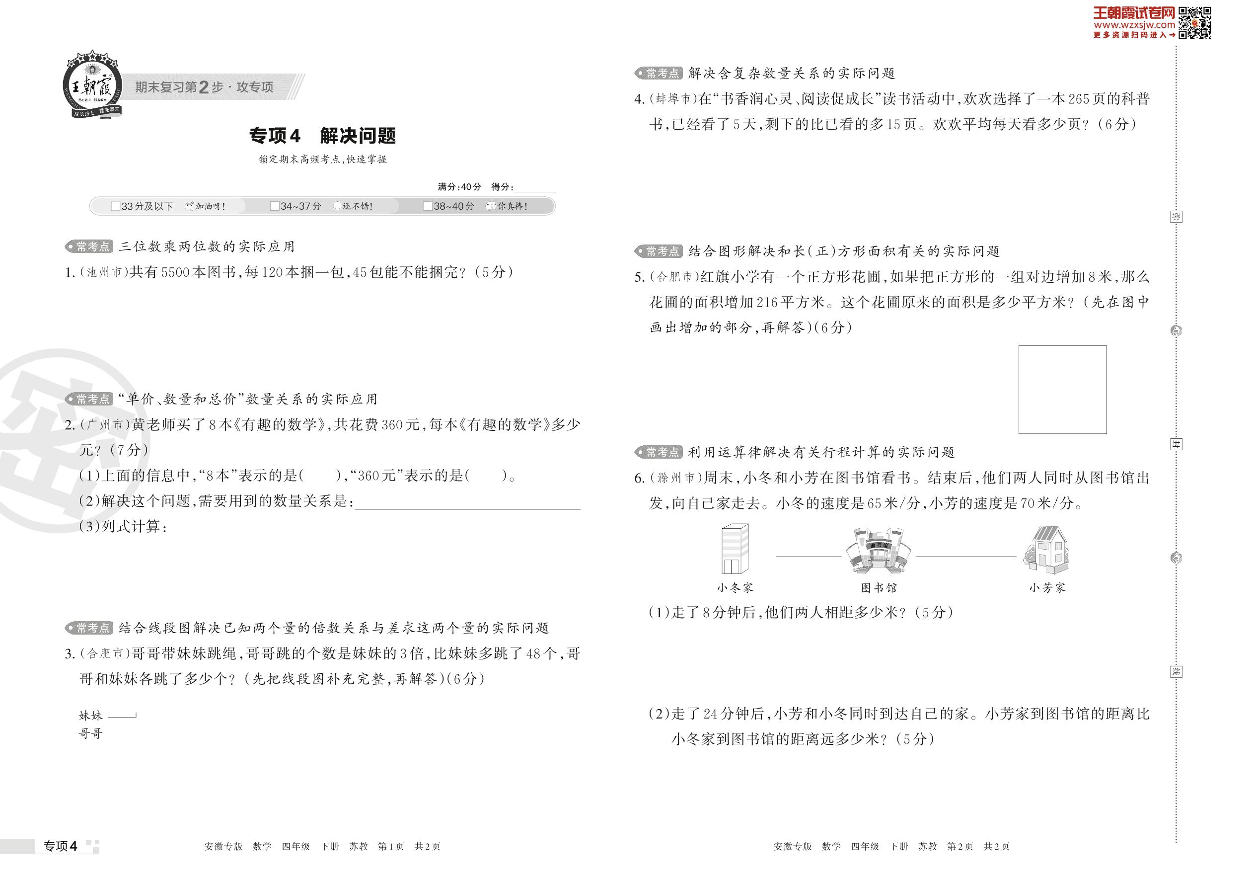 王朝霞期末专项卷——解决问题四年级下册数学(苏教版)_R230424140315884【4】