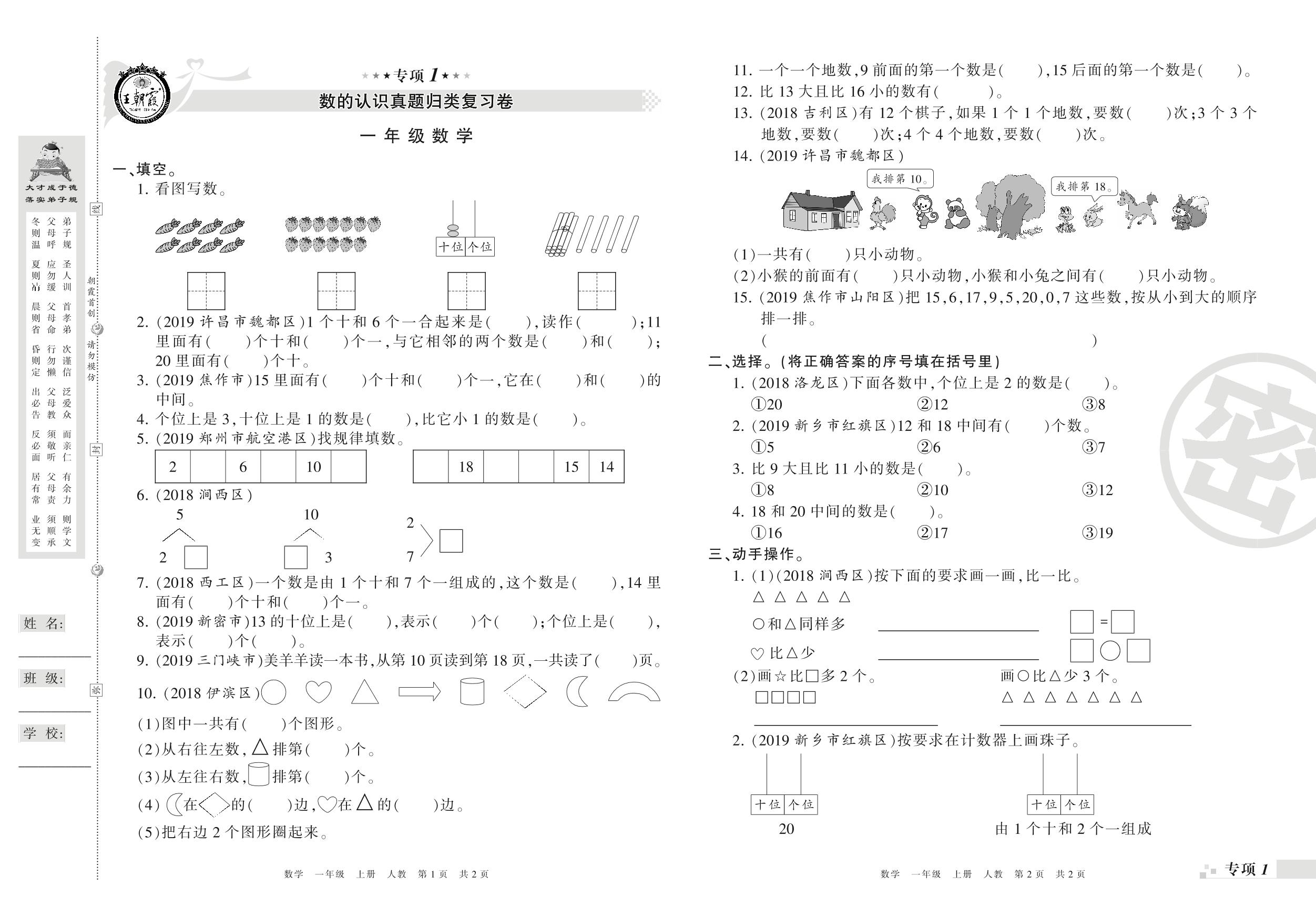 王朝霞期末专项卷——数的认识、计算真题归类复习一年级上册数学(人教版)_R210802220042【0】