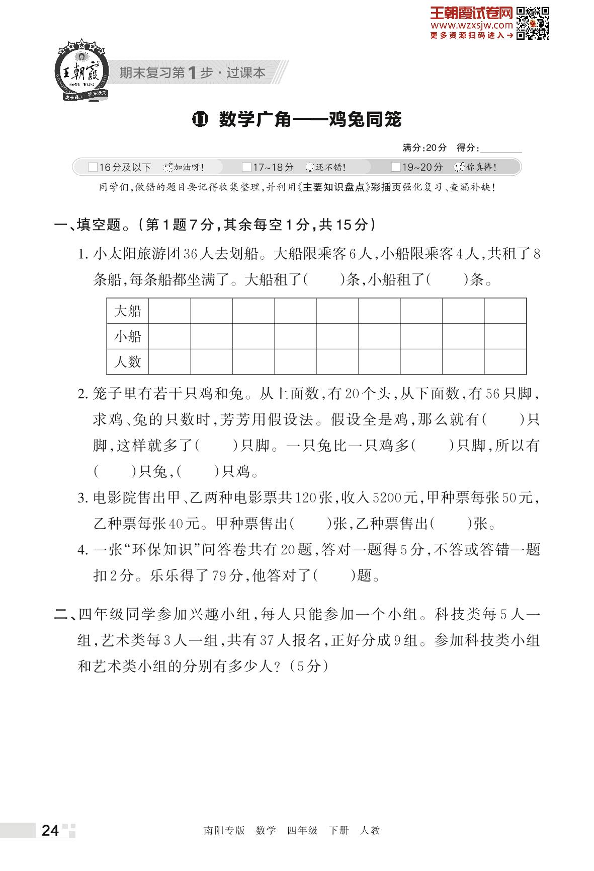 王朝霞期末过课本——11 数学广角:鸡兔同笼四年级下册数学(人教版)_R230424140506783