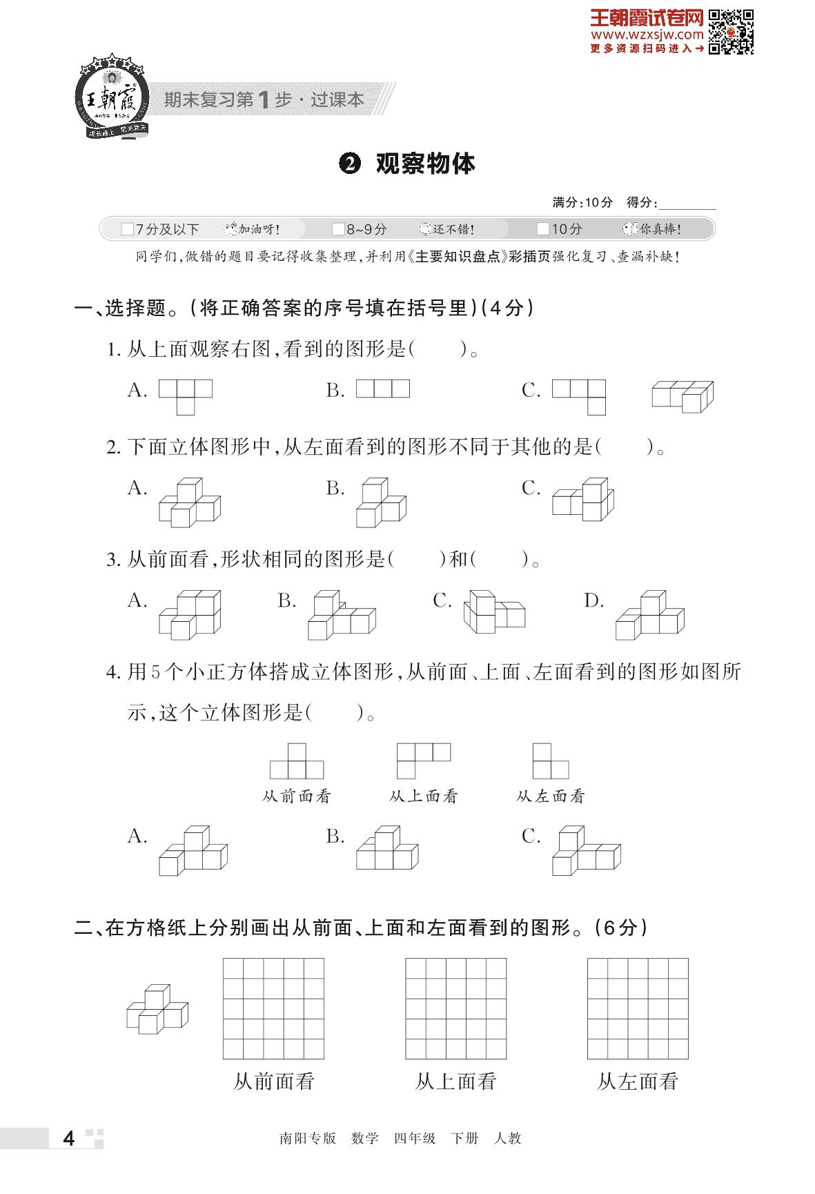 王朝霞期末过课本——2 观察物体四年级下册数学(人教版)_R230424140506086
