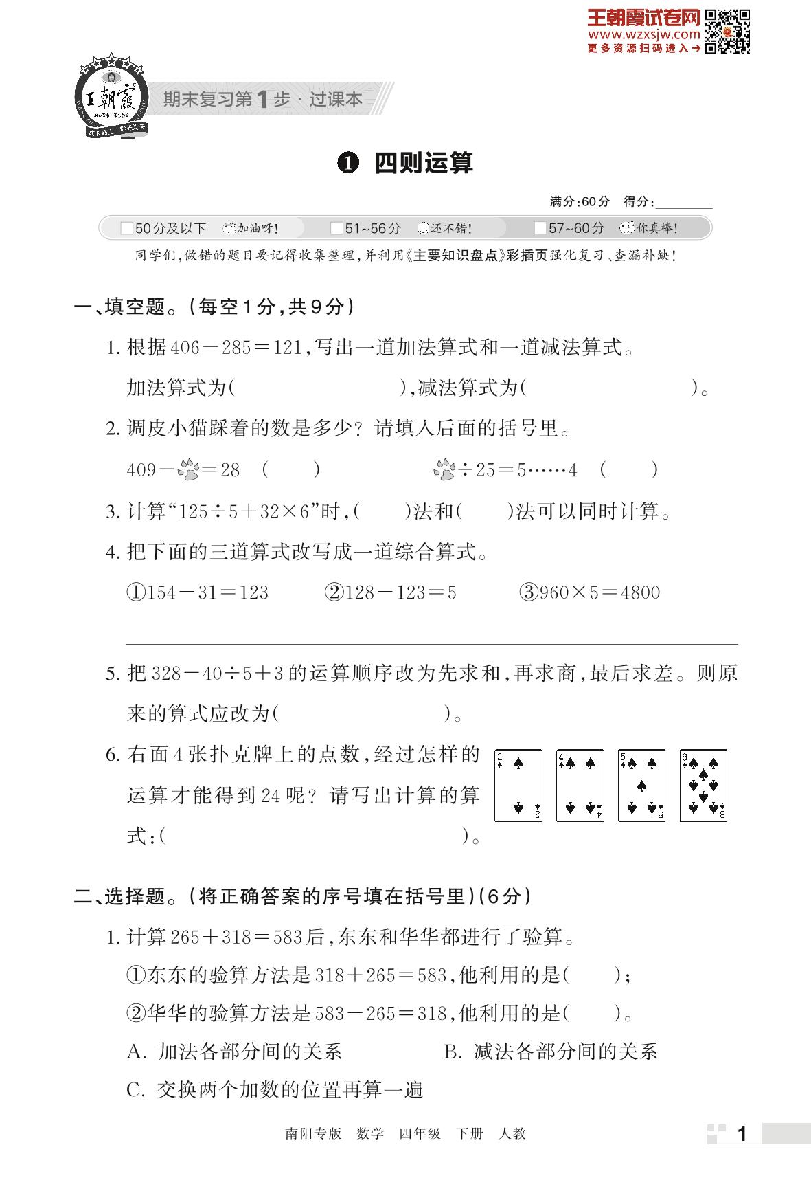王朝霞期末过课本——1 四则运算四年级下册数学(人教版)_R230424140506979