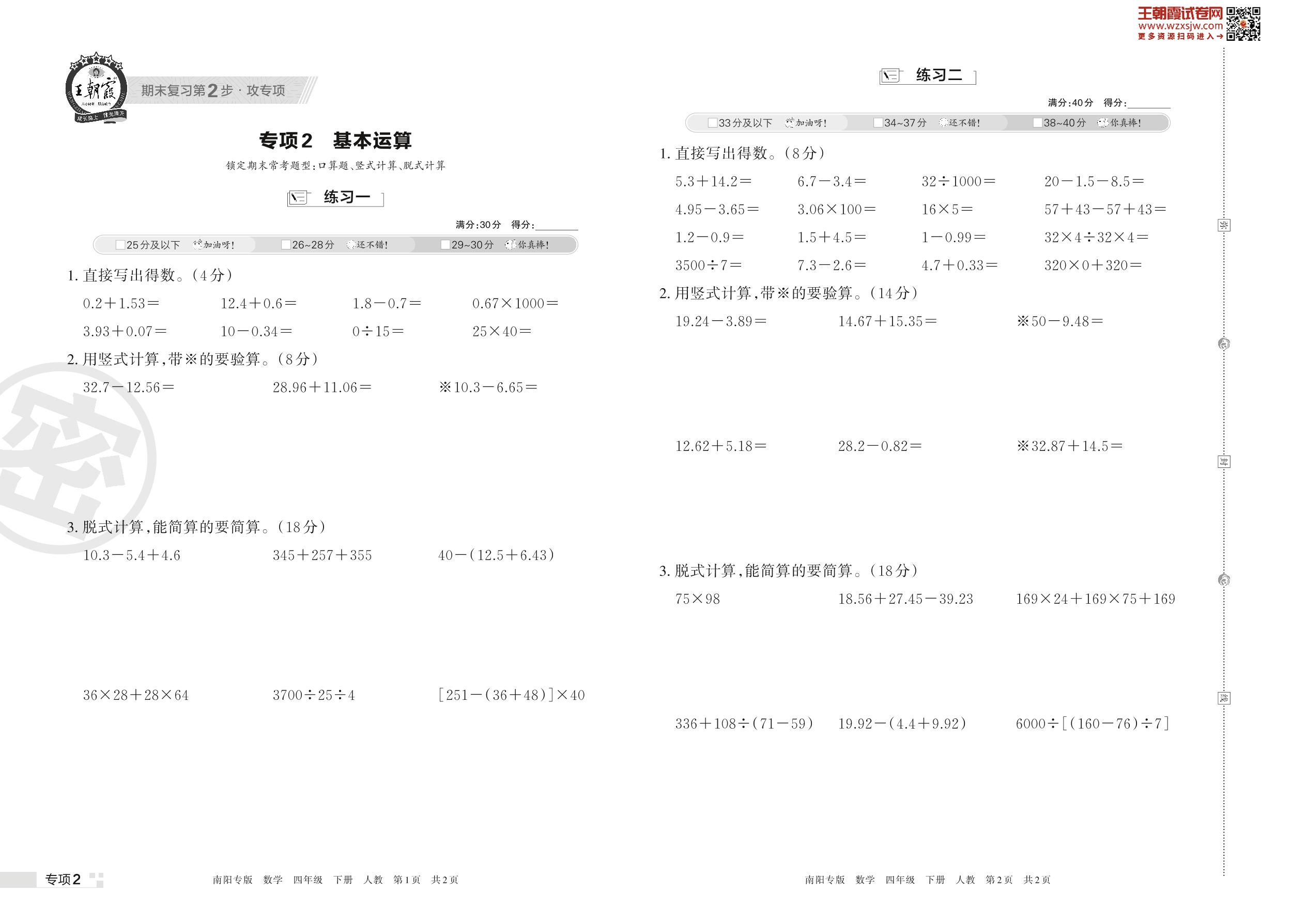 王朝霞期末专项卷——基本运算四年级下册数学(人教版)_R230424140507222【2】