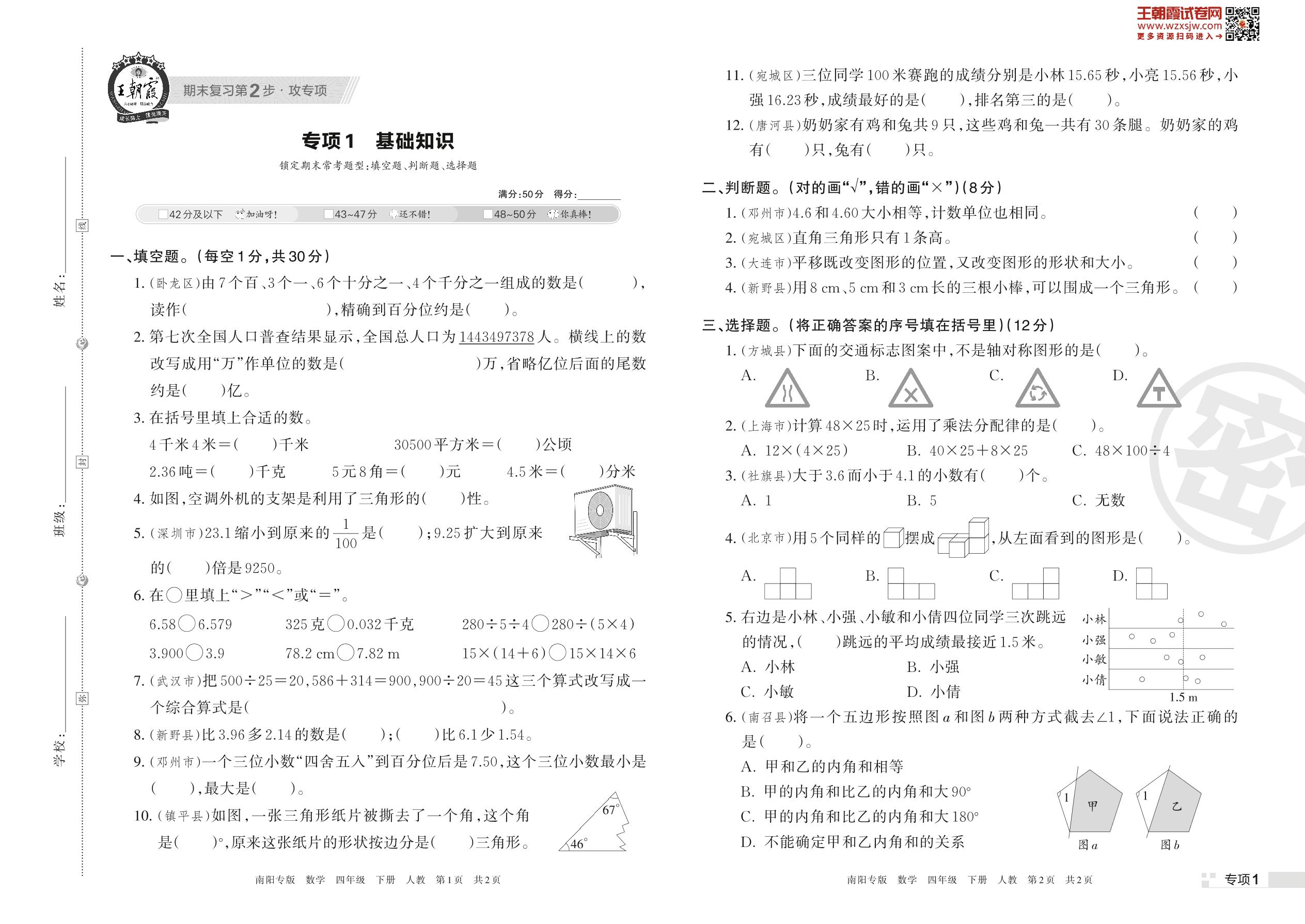 王朝霞期末专项卷——基础知识四年级下册数学(人教版)_R230424140507226【1】