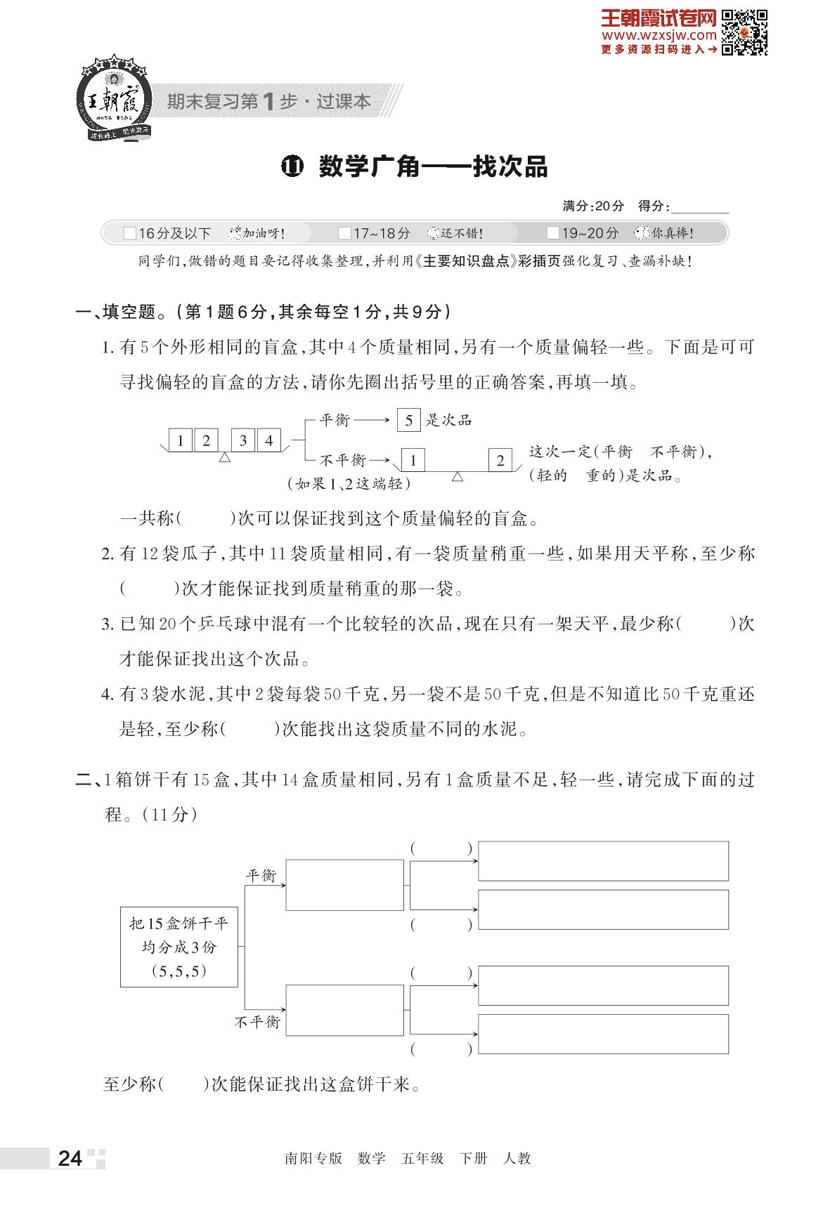 王朝霞期末过课本——11 数学广角:找次品五年级下册数学(人教版)_R230424141145755