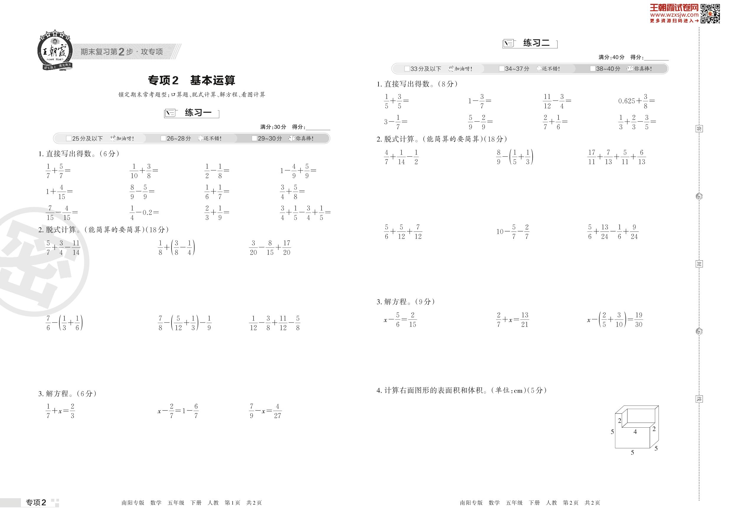 王朝霞期末专项卷——基本运算五年级下册数学(人教版)_R230424141146002【2】