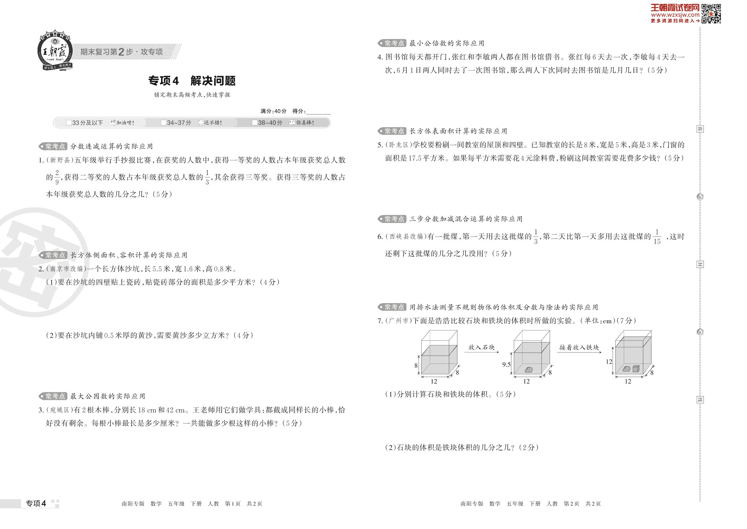 王朝霞期末专项卷——解决问题五年级下册数学(人教版)_R230424141146104【4】
