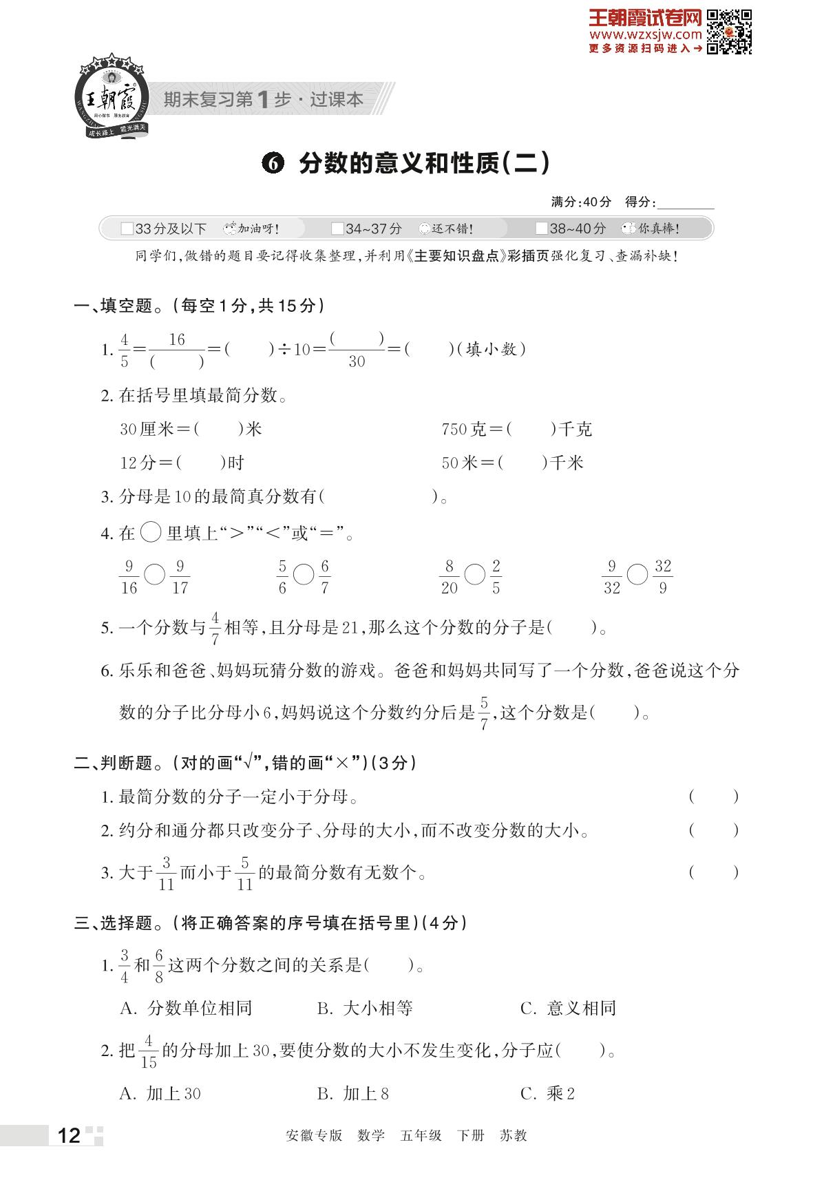 王朝霞期末过课本——6 分数的意义和性质(二)五年级下册数学(苏教版)_R230424141636026