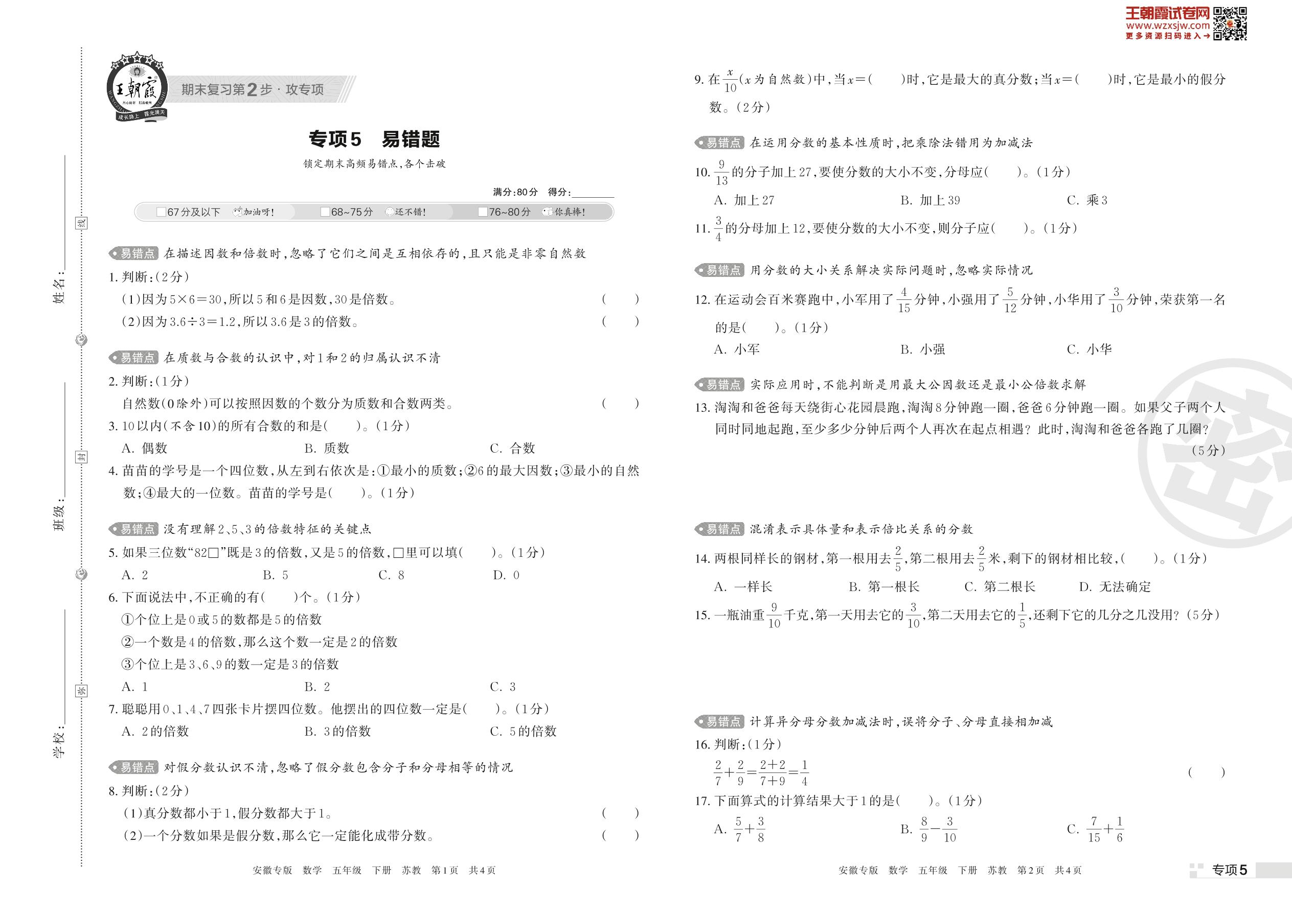 王朝霞期末专项卷——易错题五年级下册数学(苏教版)_R230424141637868【5】