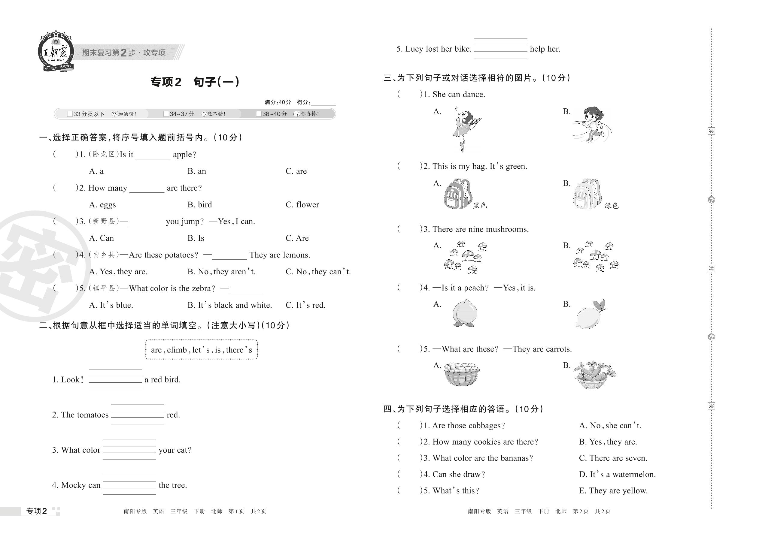 王朝霞期末专项卷——句子(一)三年级下册英语(北师版)_R230424142316006【2】