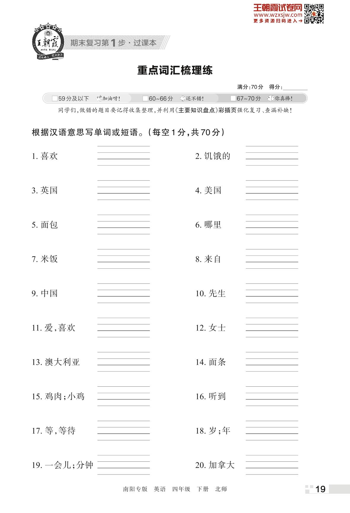 王朝霞期末过课本——重点词汇梳理练四年级下册英语(北师版)_R230424142835455