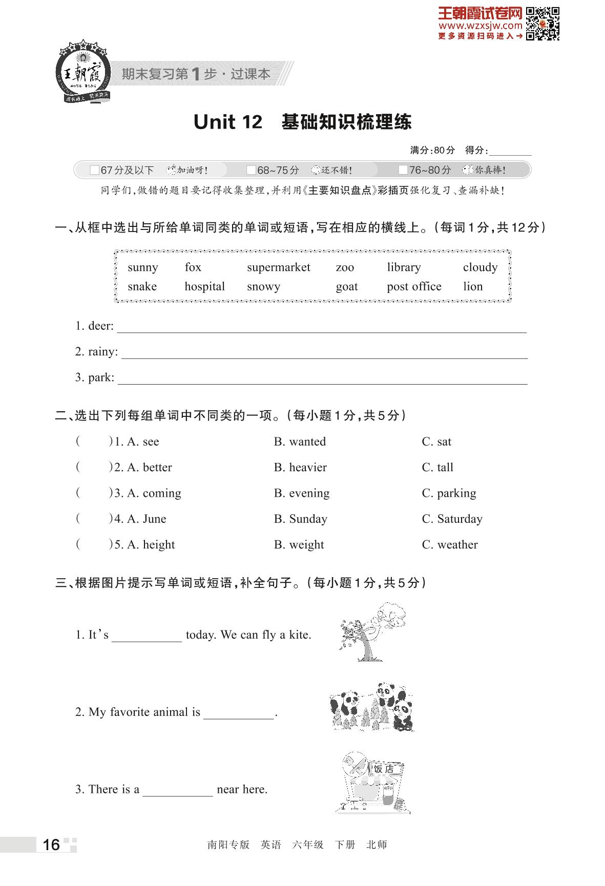王朝霞期末过课本——Unit 12 基础知识梳理练六年级下册英语(北师版)