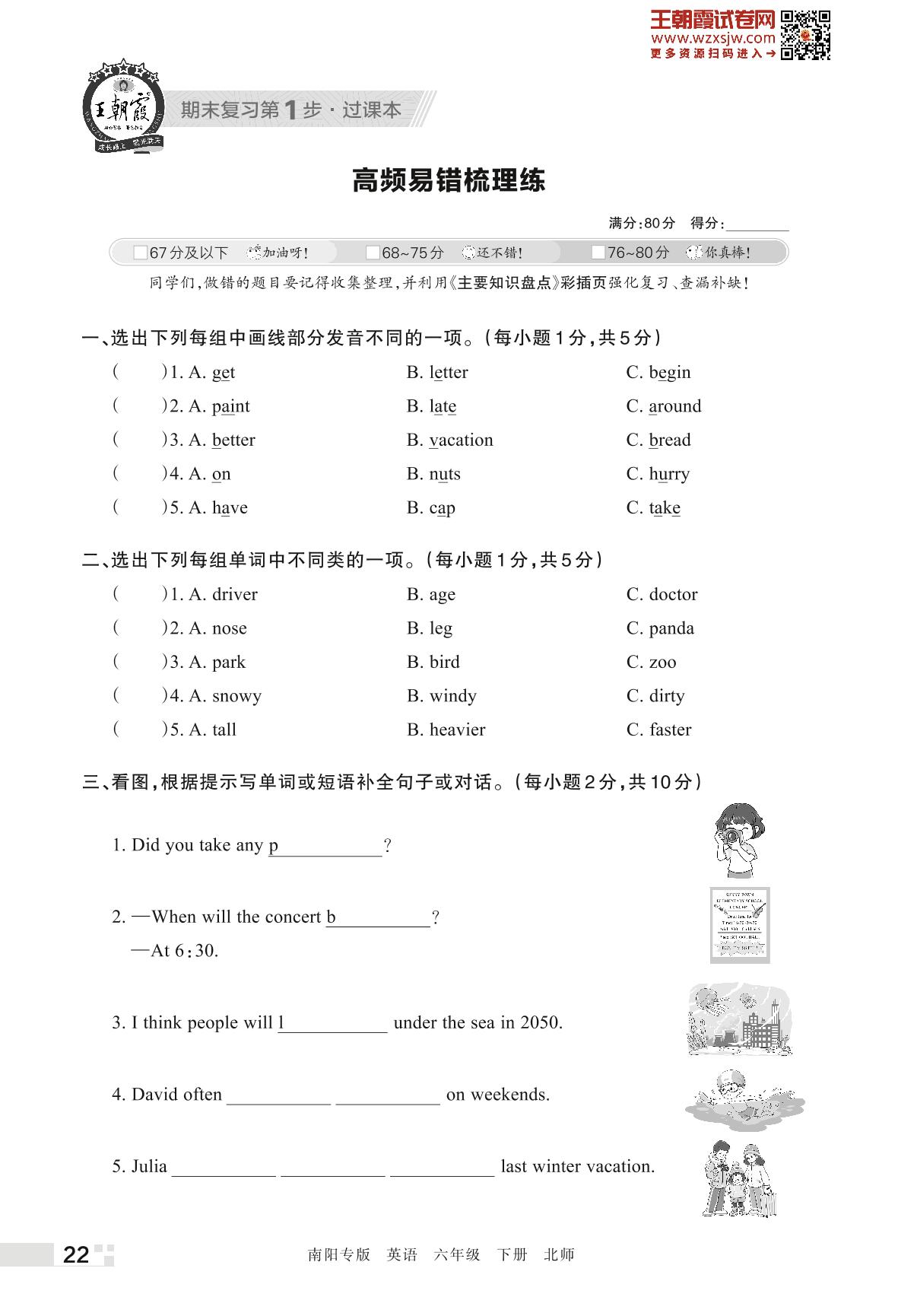 王朝霞期末过课本——高频易错梳理练六年级下册英语(北师版)