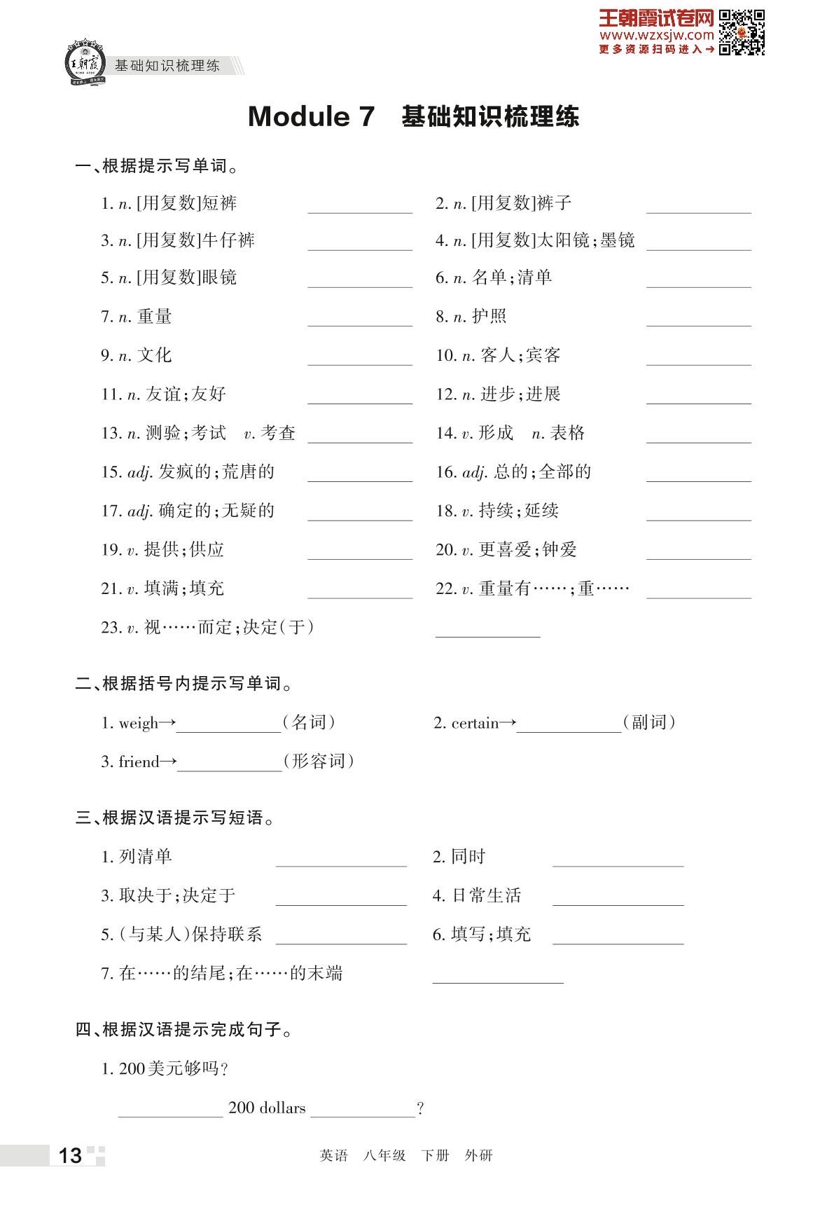 王朝霞期末过课本——Module 7 基础知识梳理练八年级下册英语(外研版)_R230424144241952