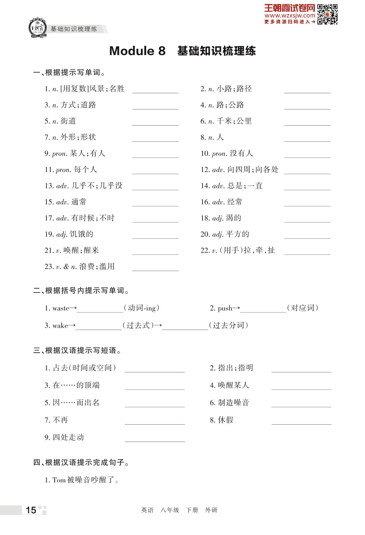 王朝霞期末过课本——Module 8 基础知识梳理练八年级下册英语(外研版)_R230424144241240