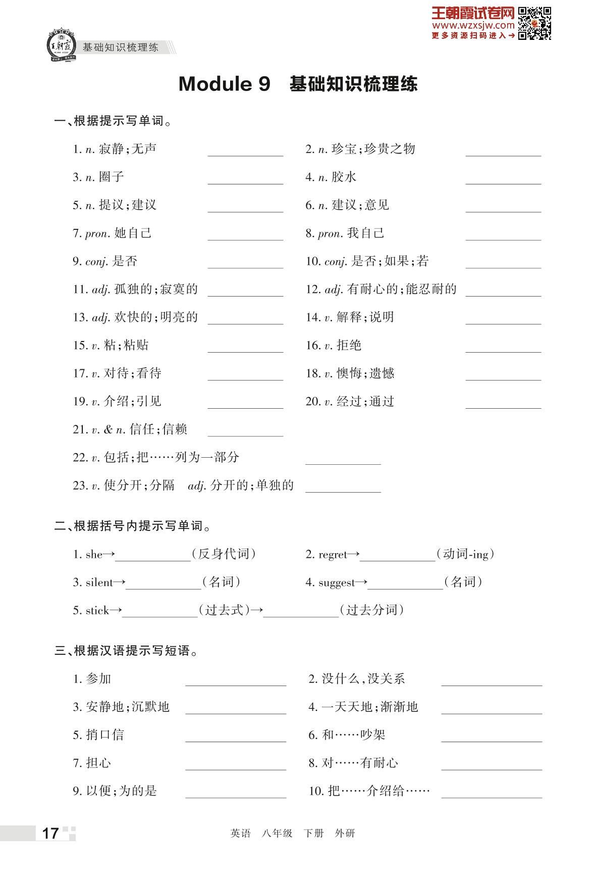 王朝霞期末过课本——Module 9 基础知识梳理练八年级下册英语(外研版)_R230424144241757